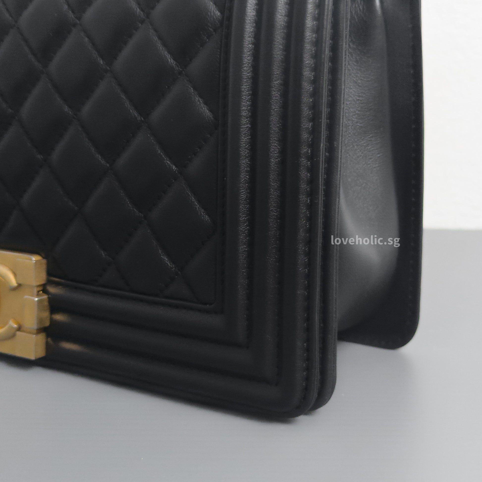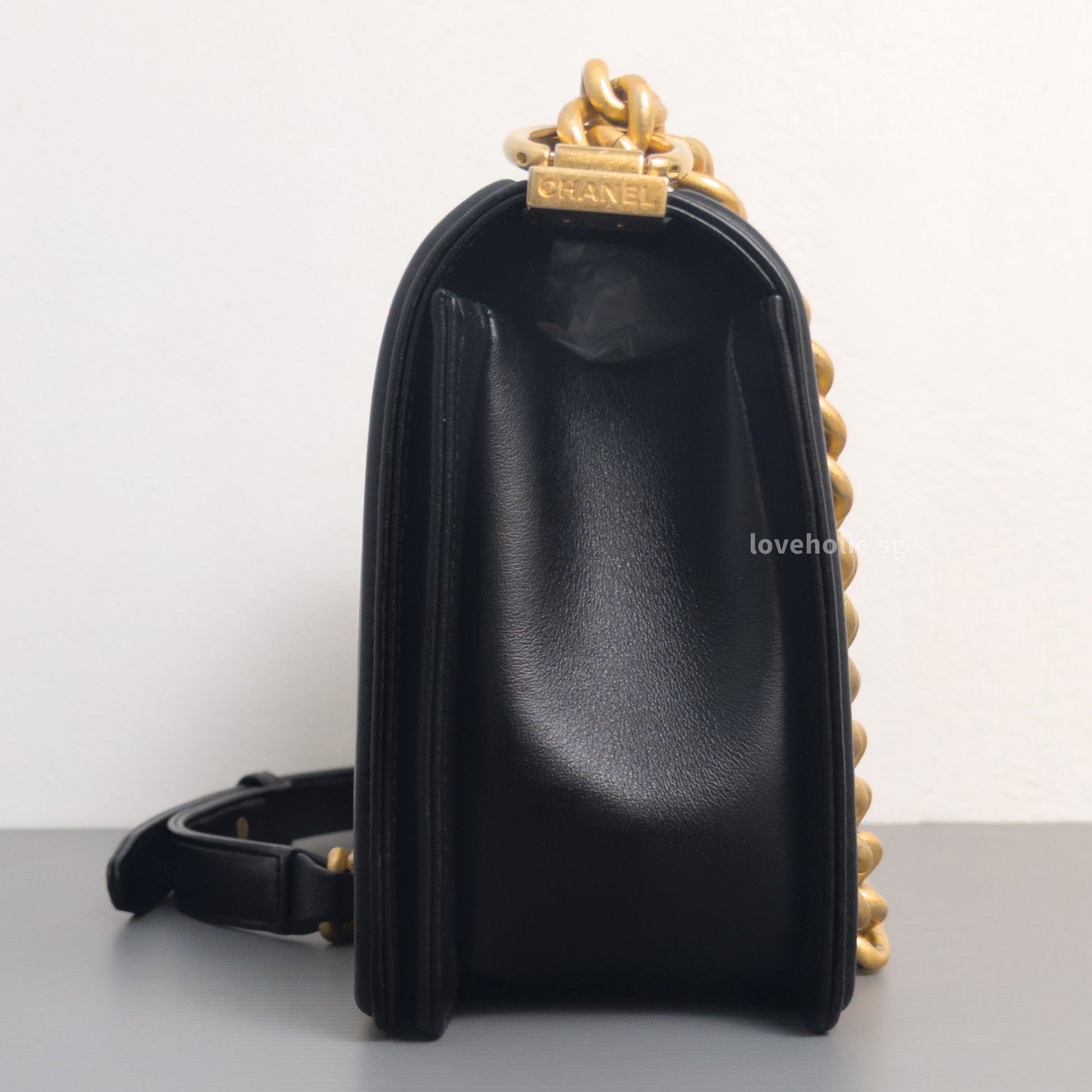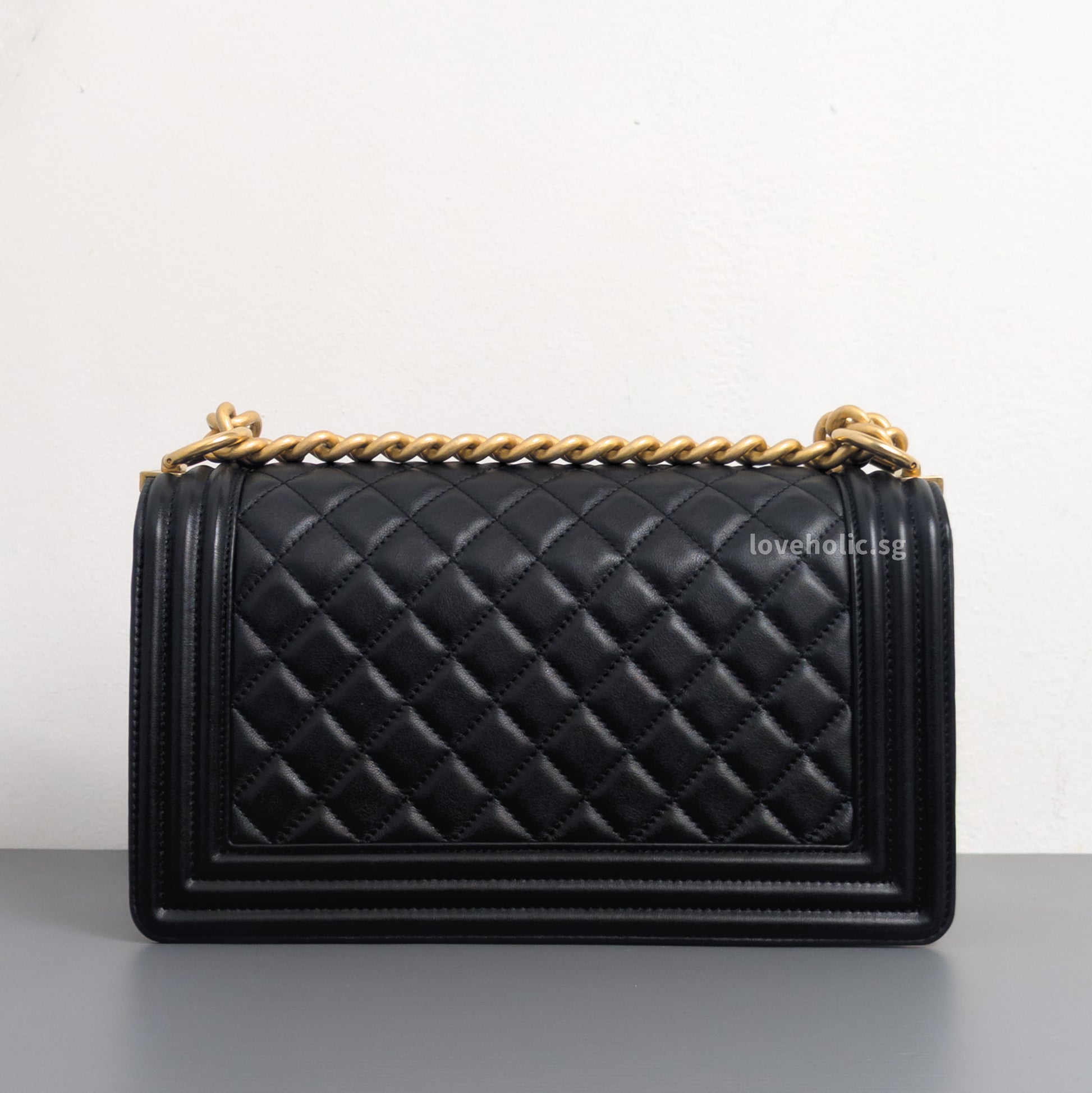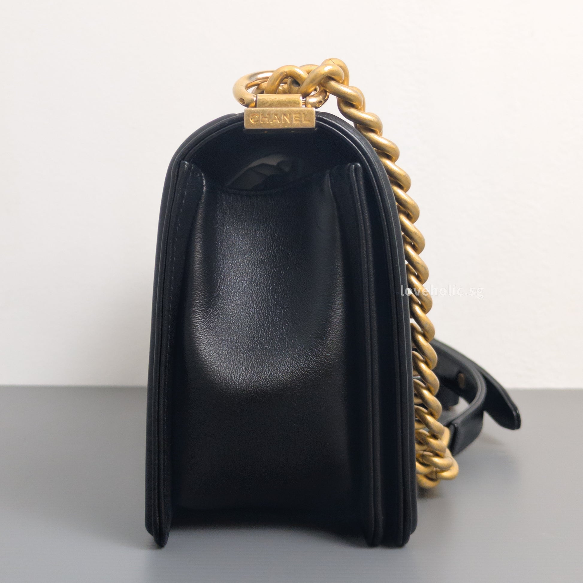 Boy Old Medium | Black Lambskin Brushed Gold Hardware