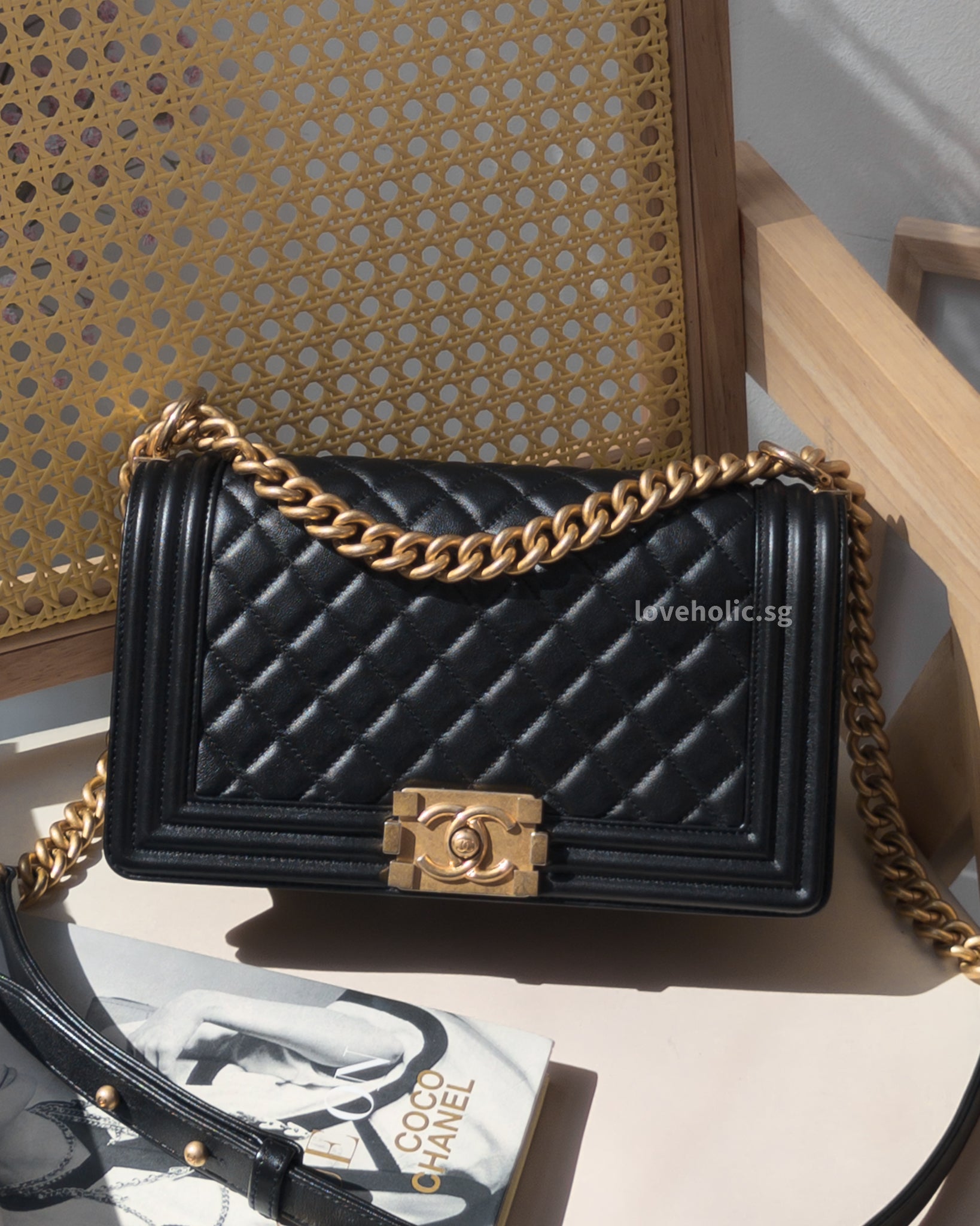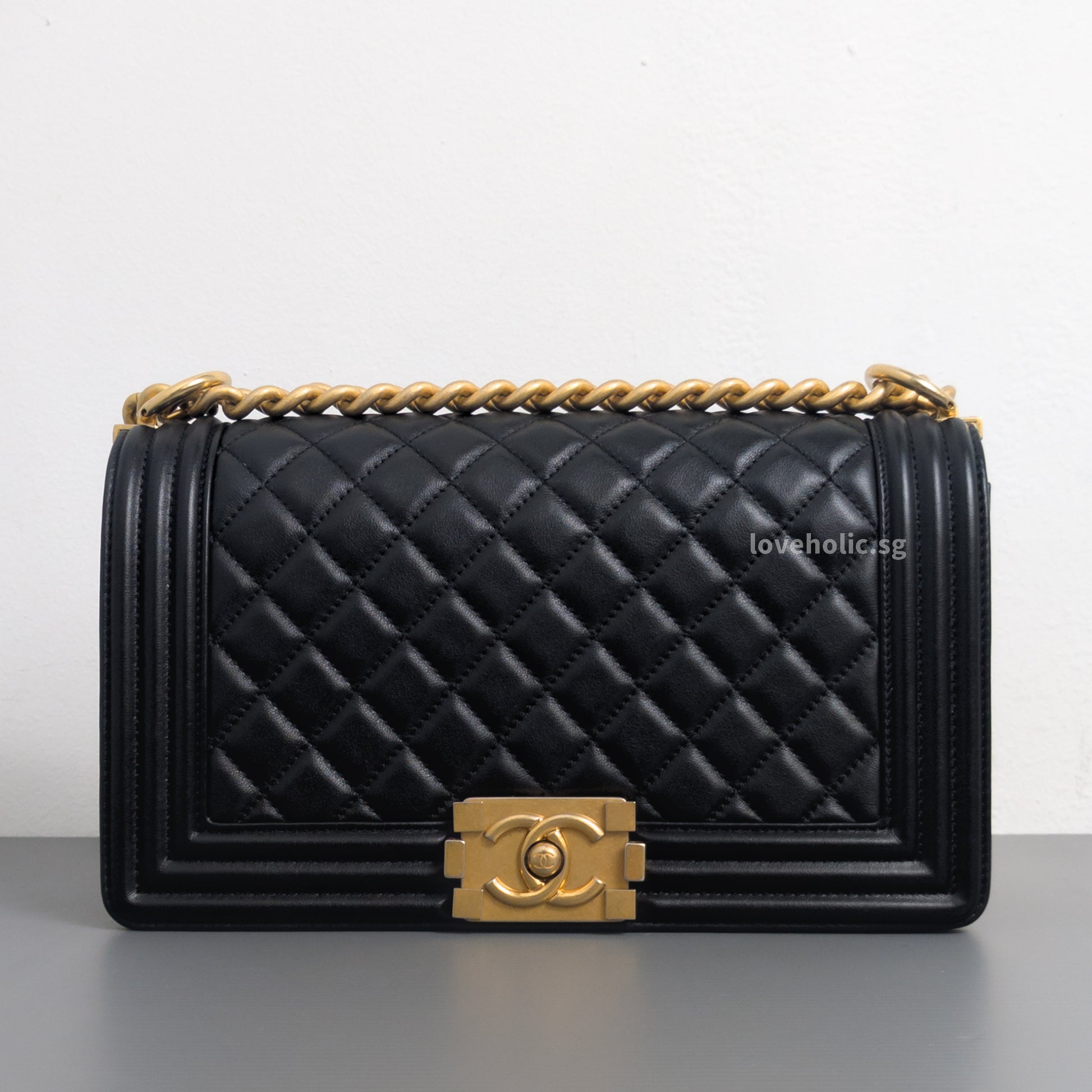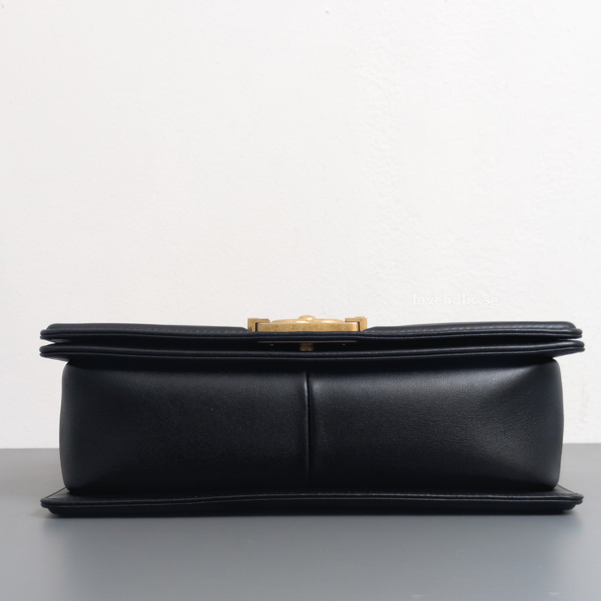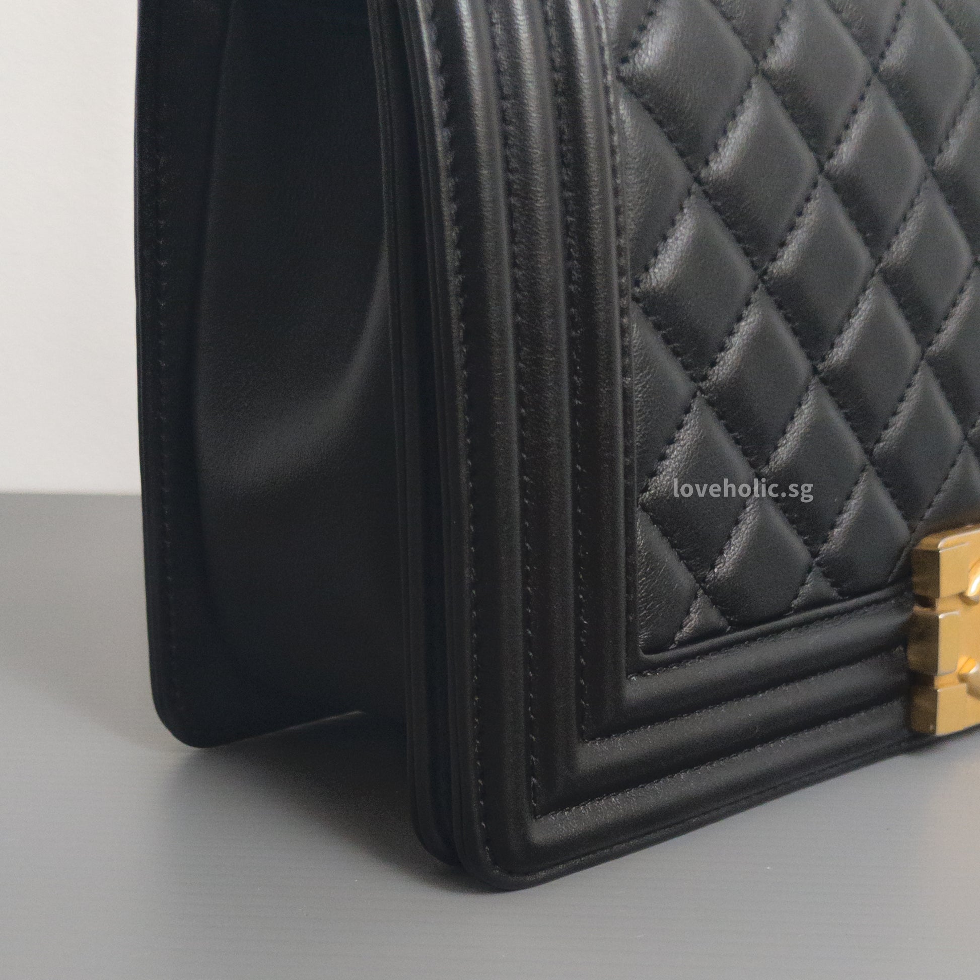 Boy Old Medium | Black Lambskin Brushed Gold Hardware