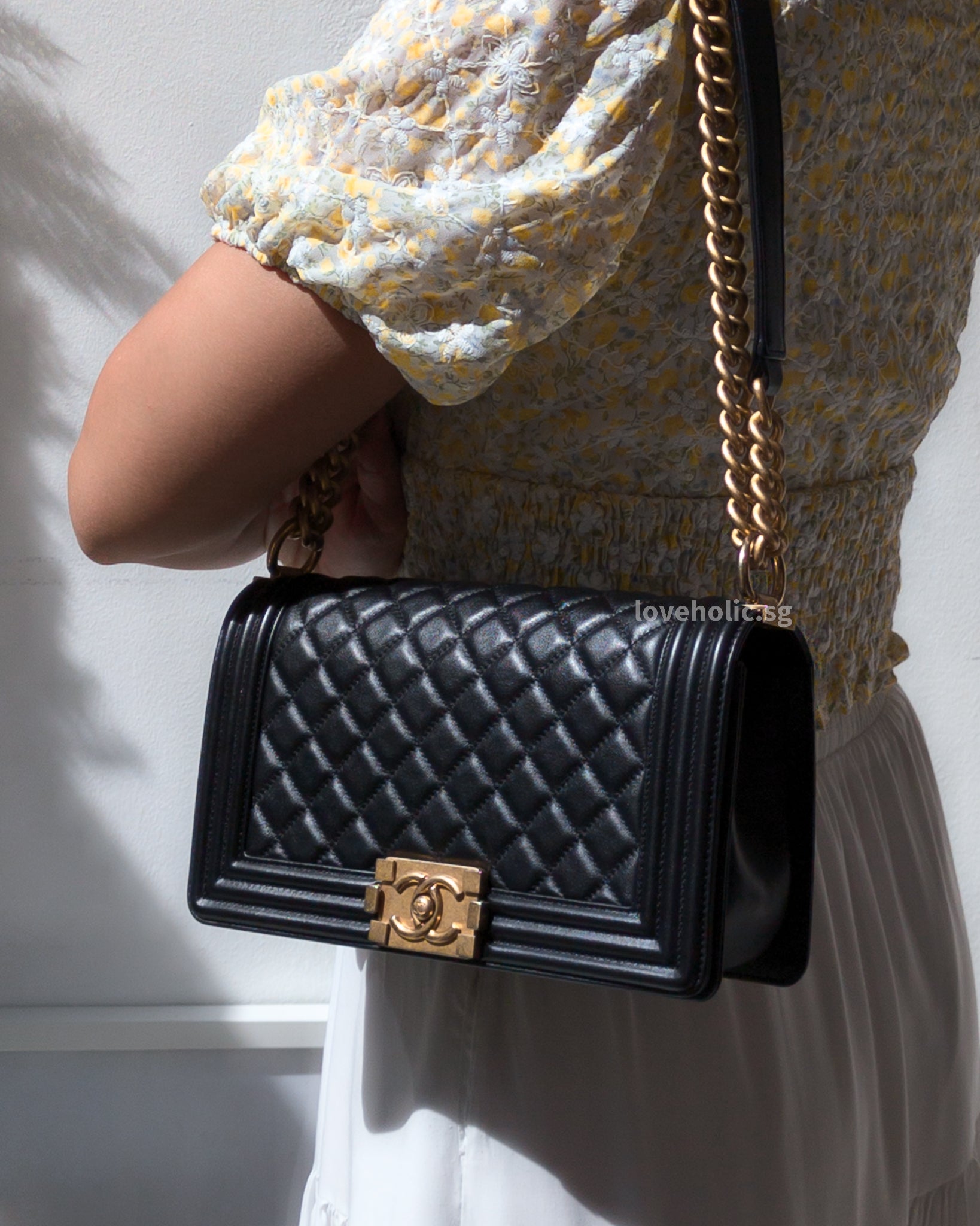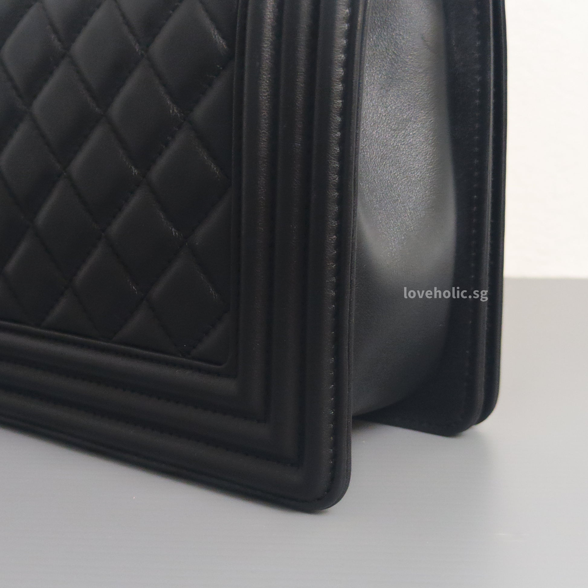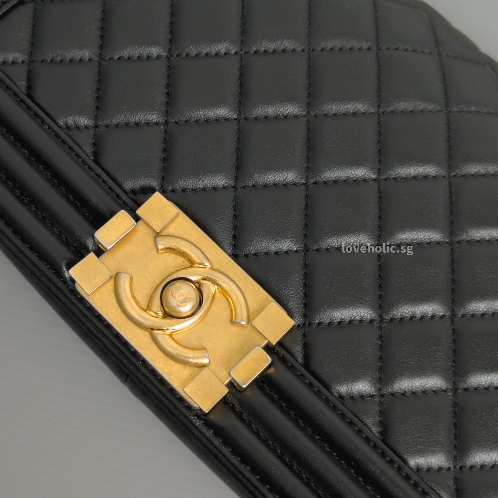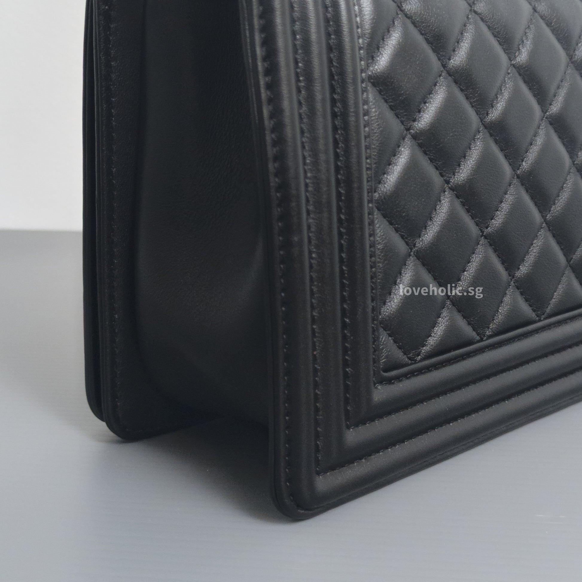 Boy Old Medium | Black Lambskin Brushed Gold Hardware