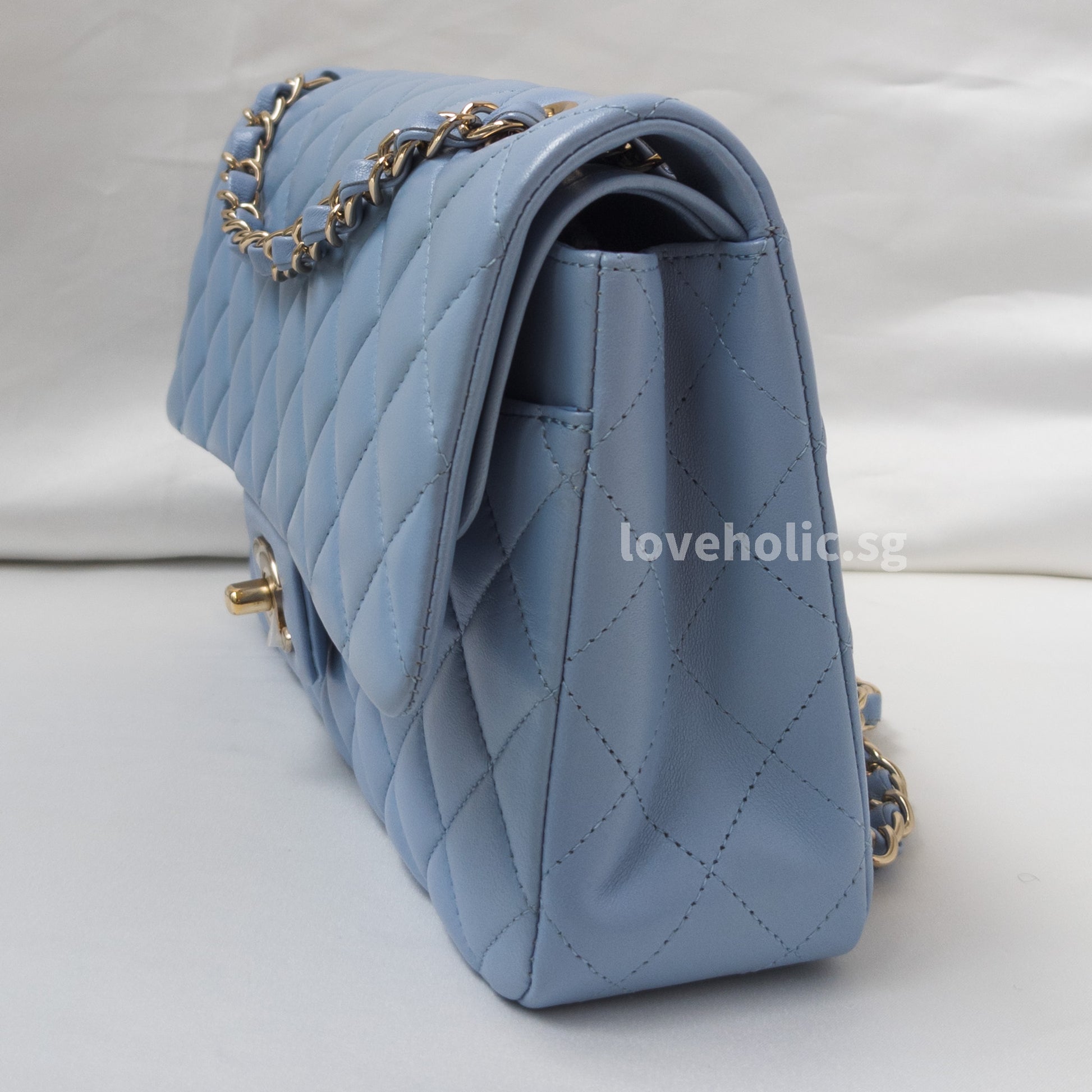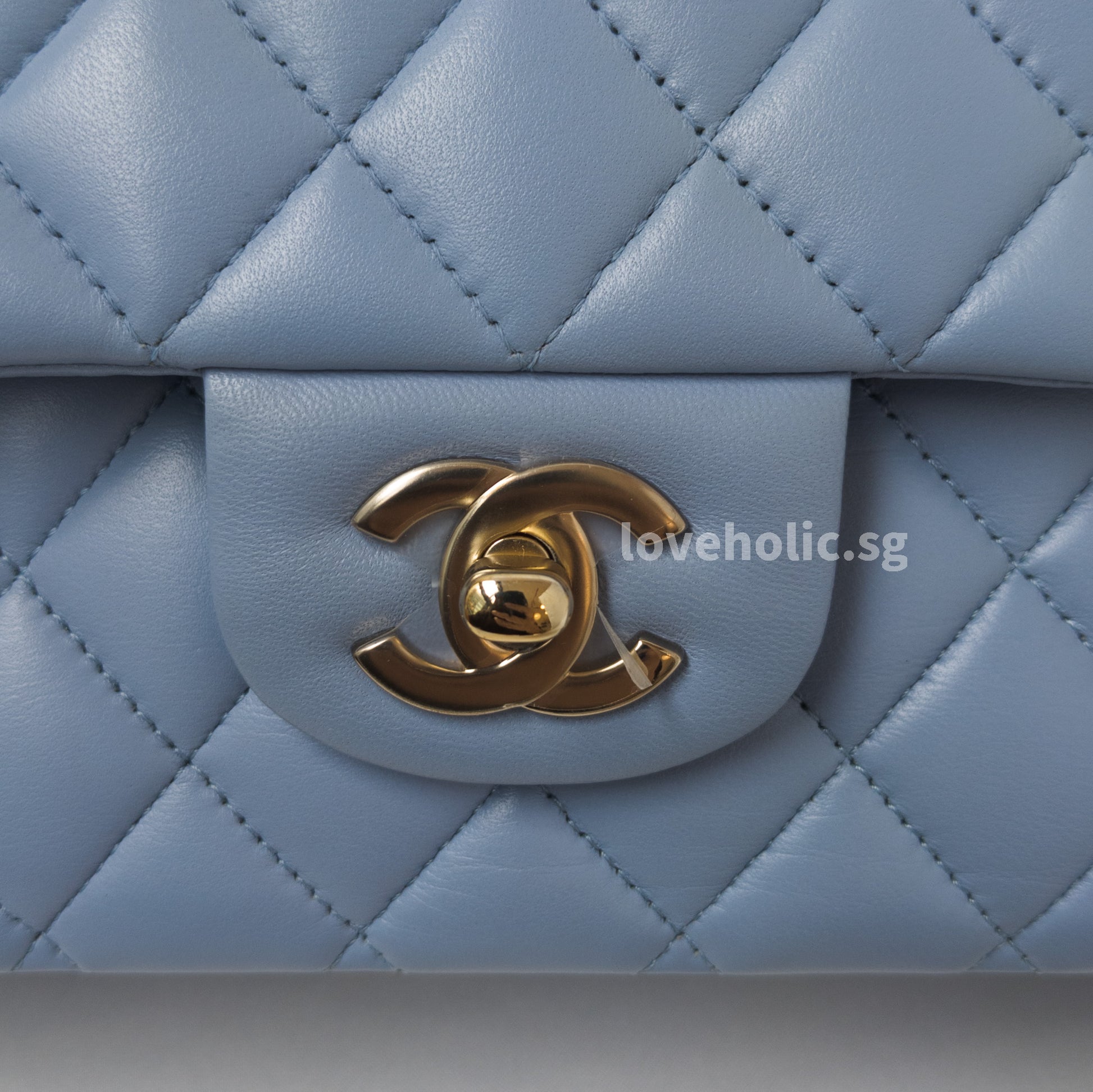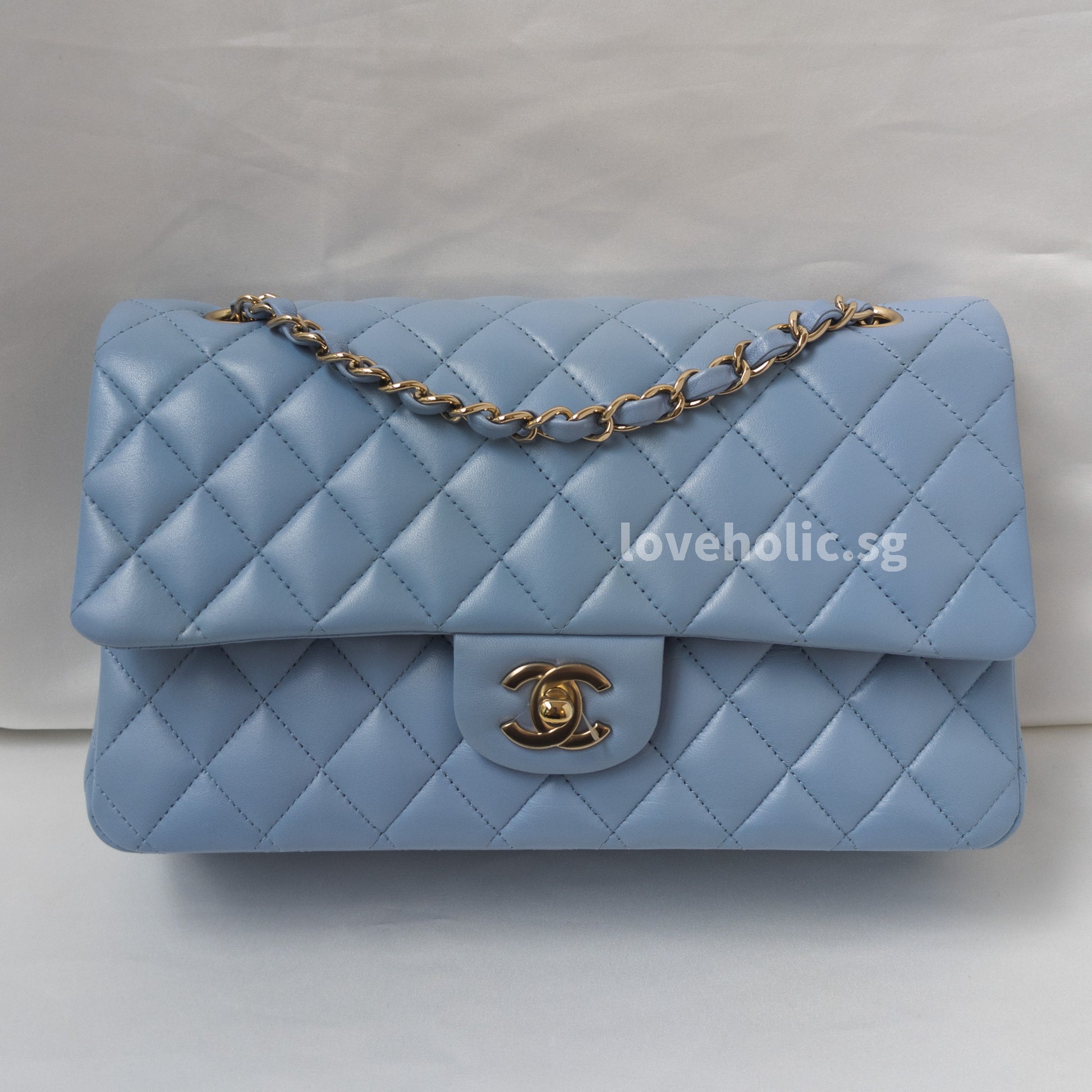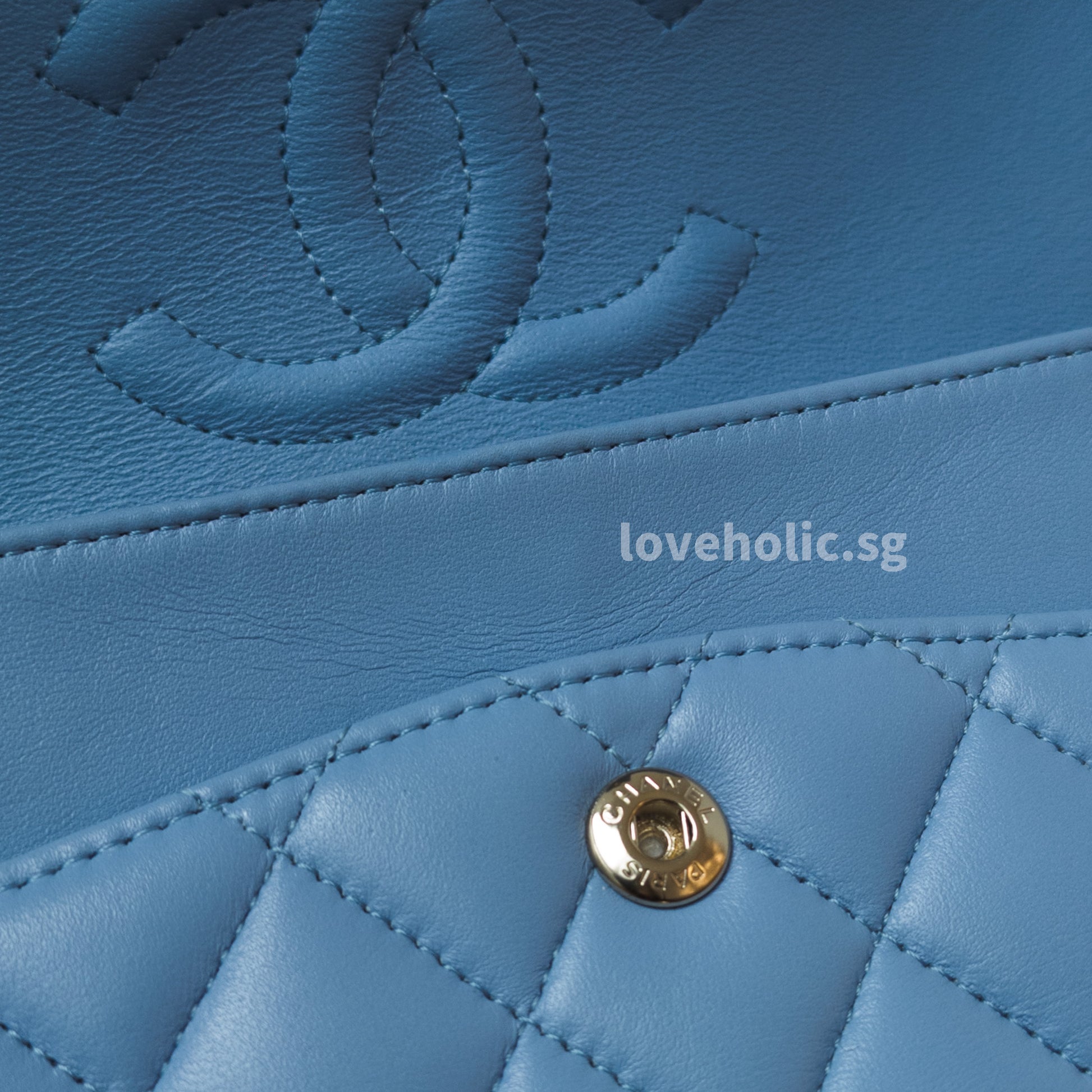 Chanel Classic Flap Medium | 21C Sky Blue Lambskin Light Gold Hardware