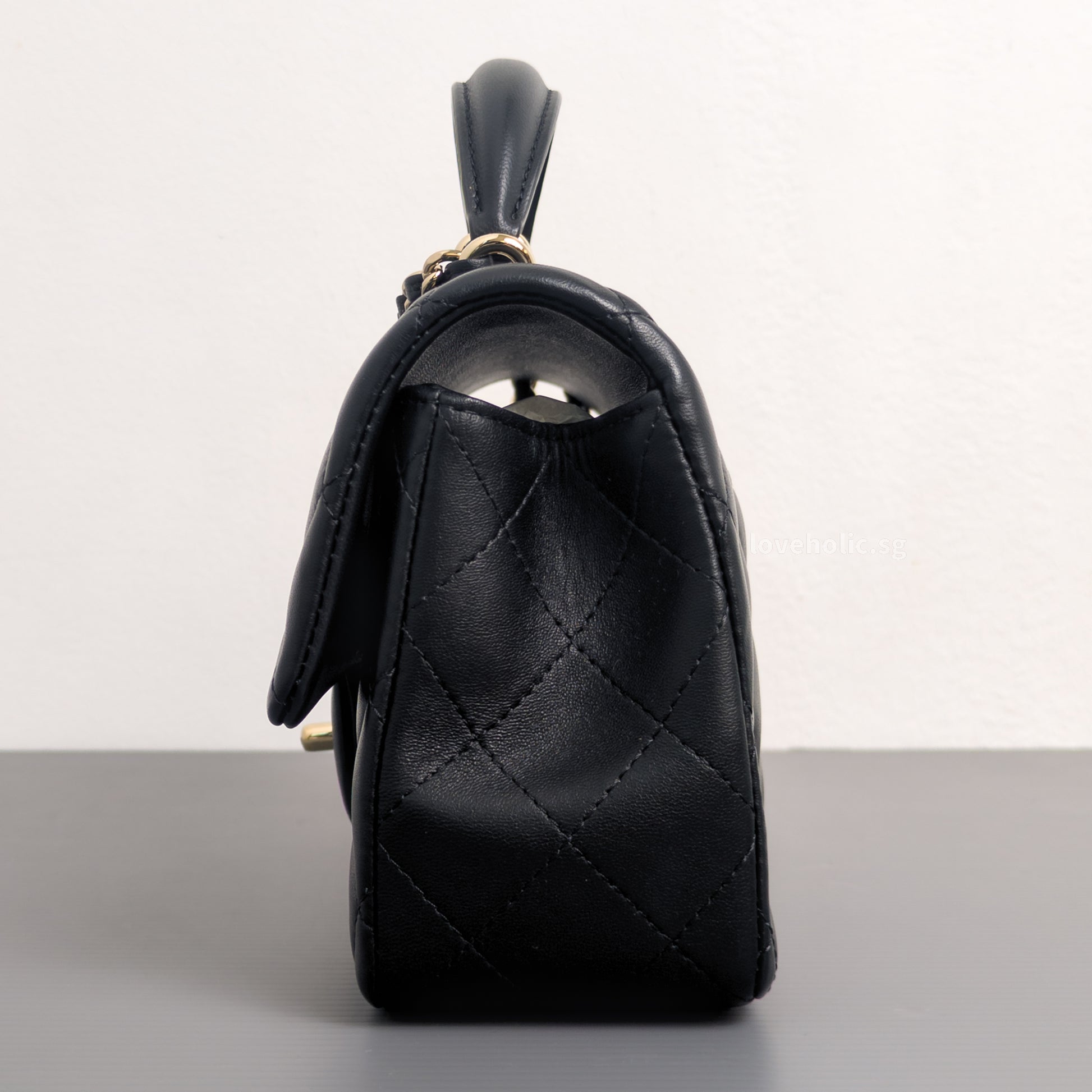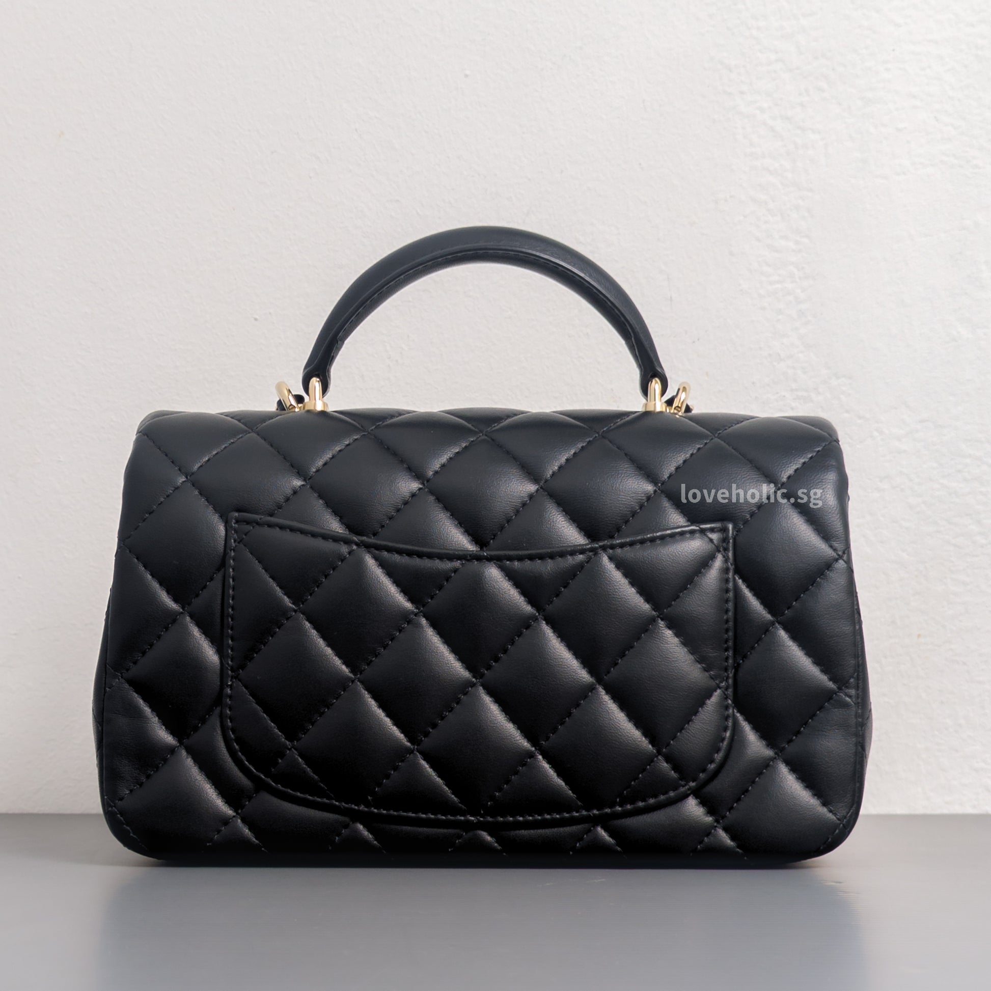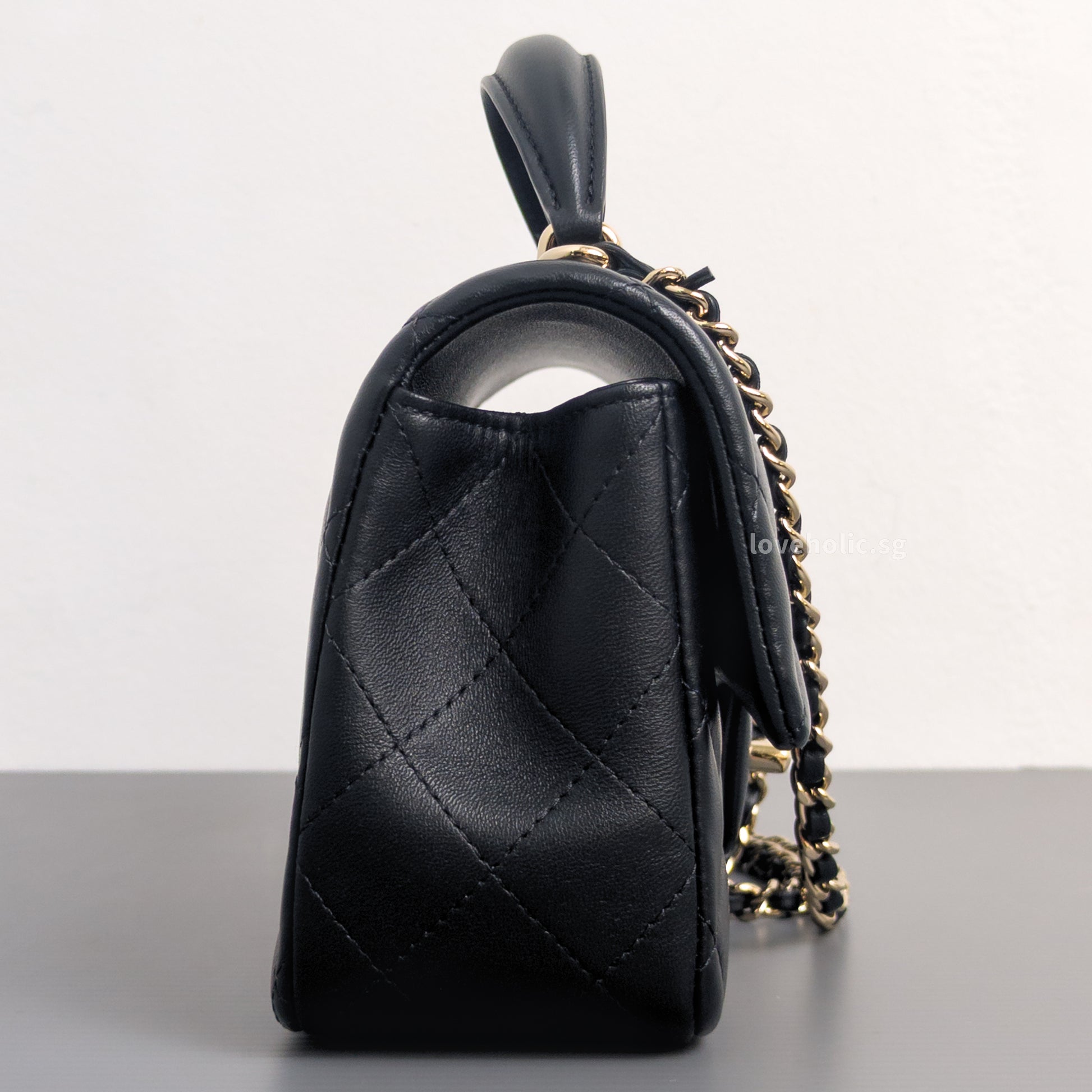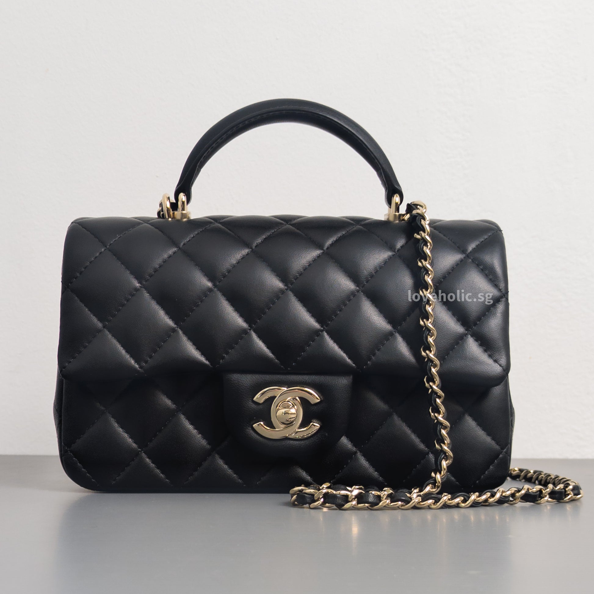 Mini Rectangle with Top Handle Black Lambskin Light Gold Hardware