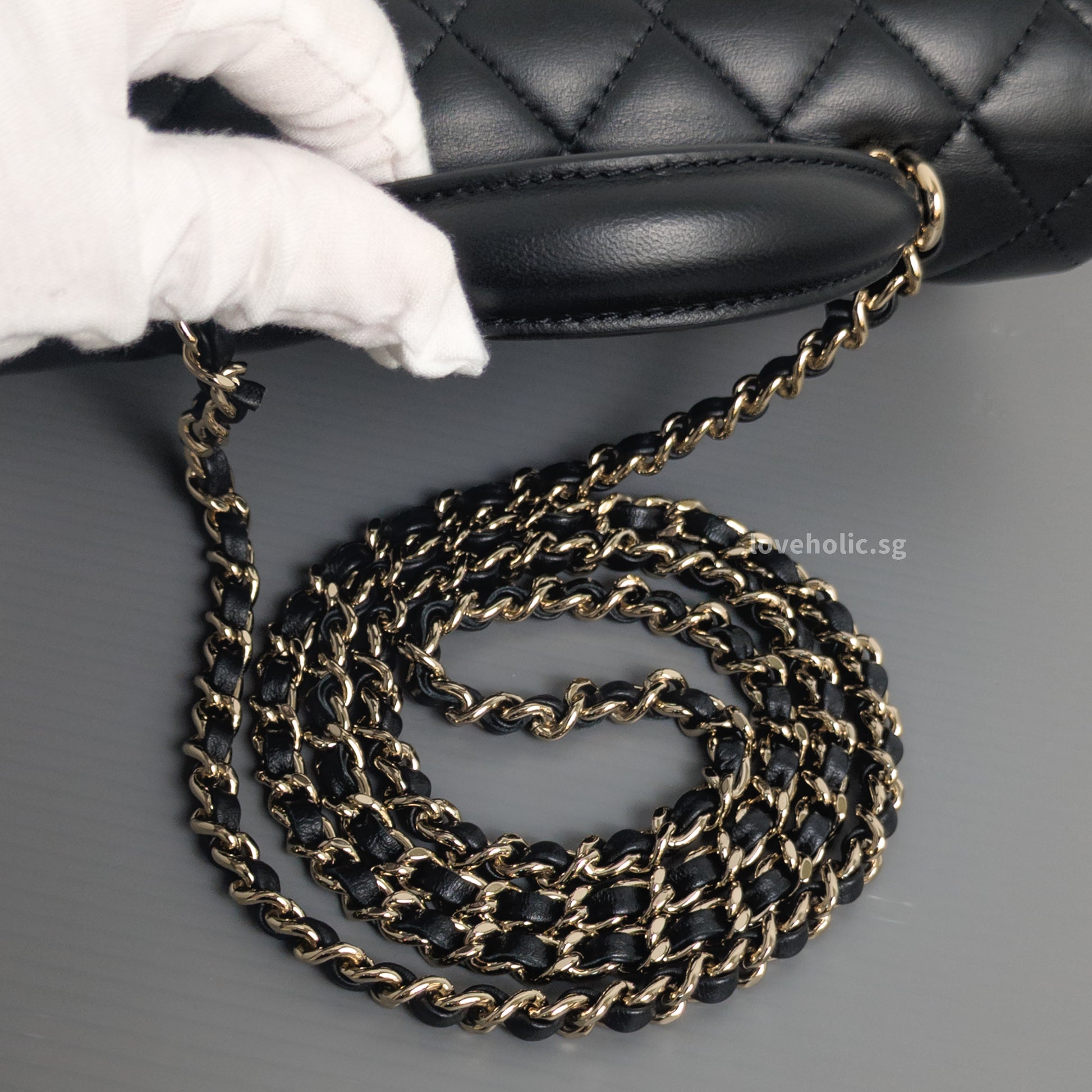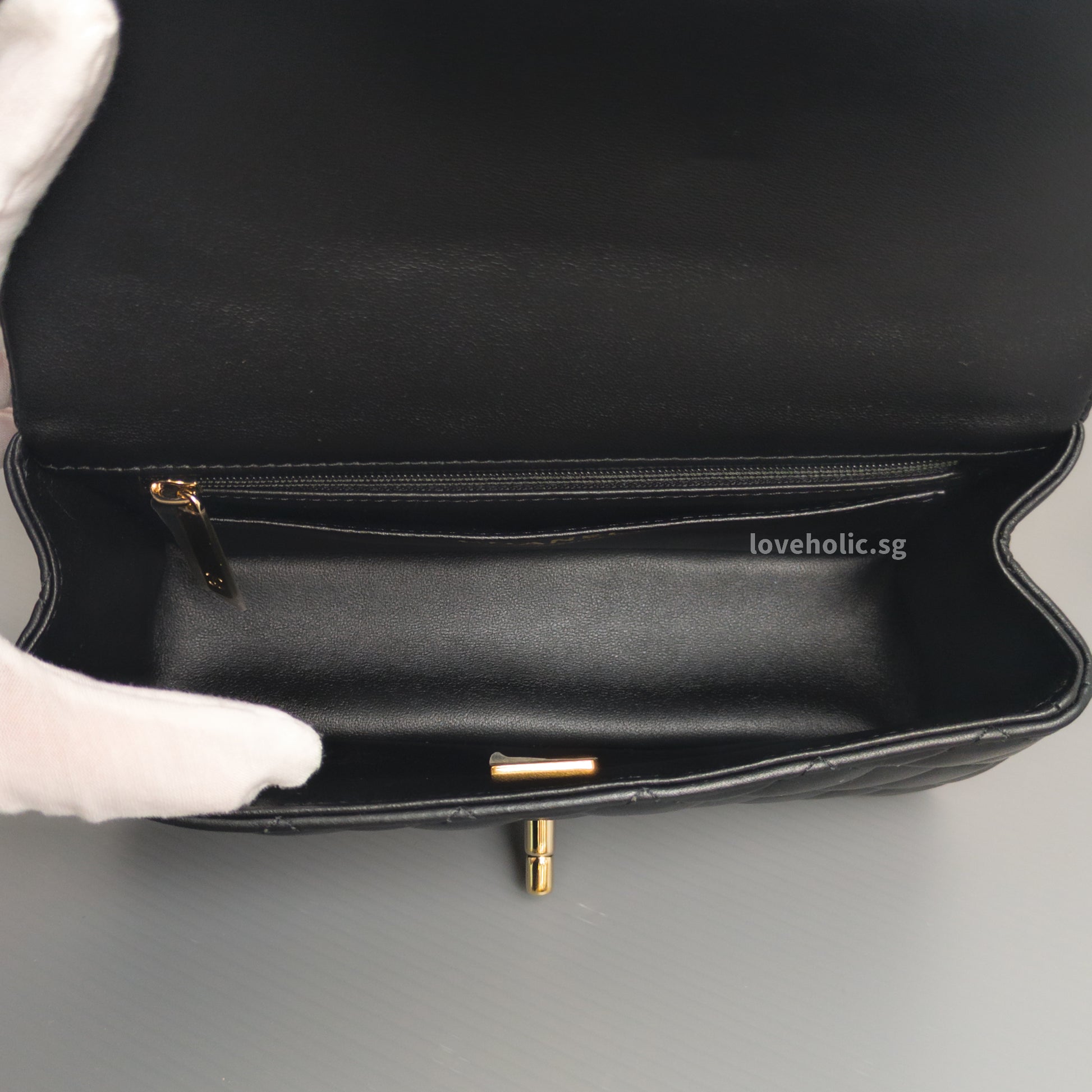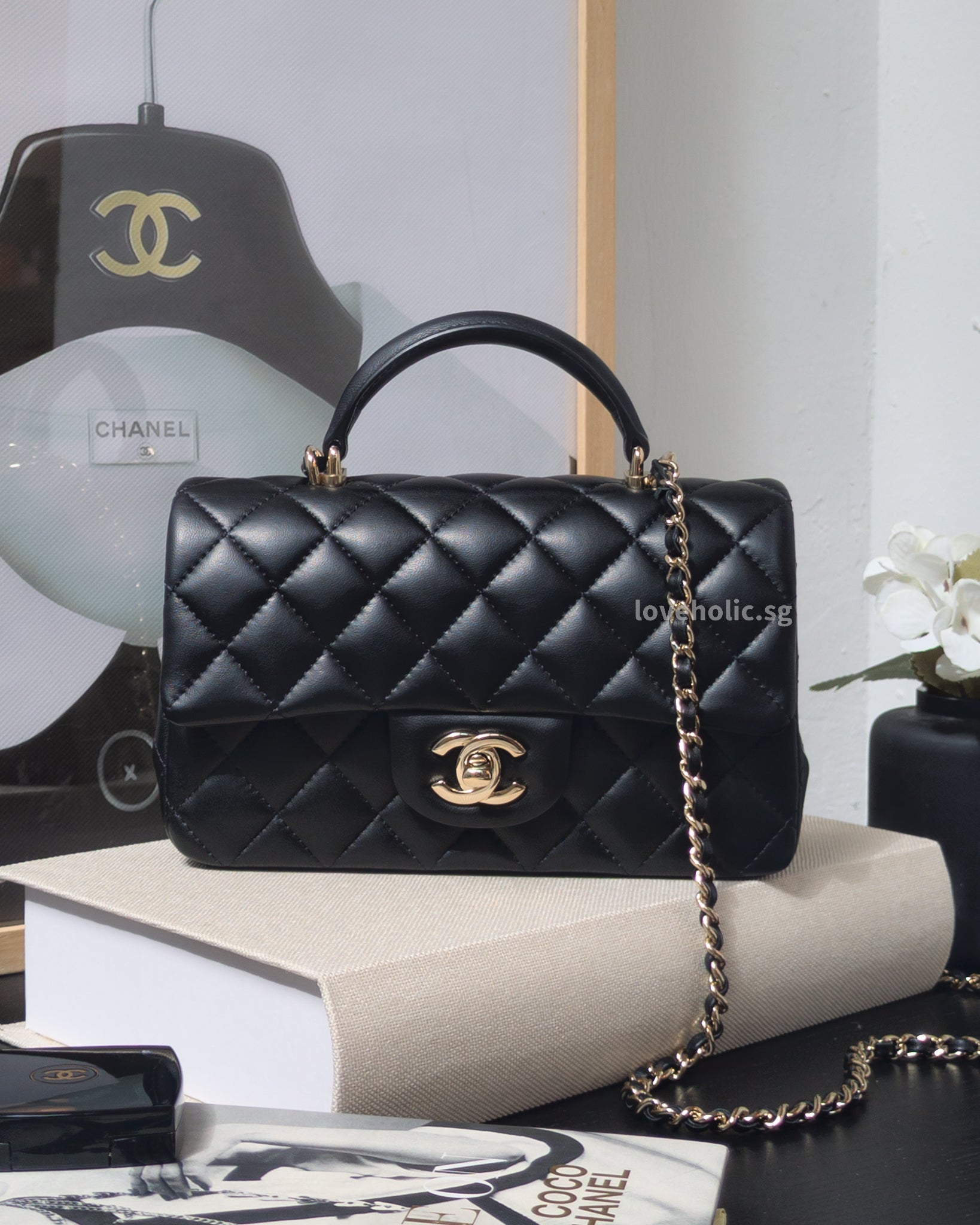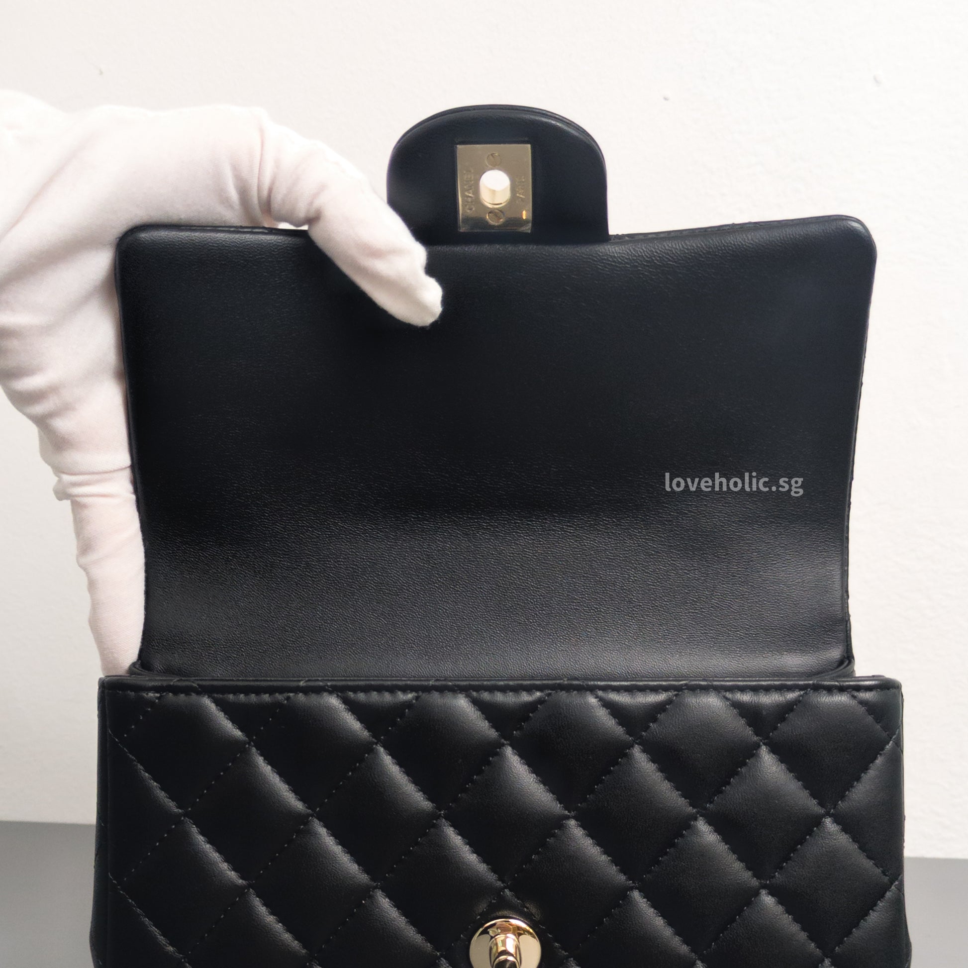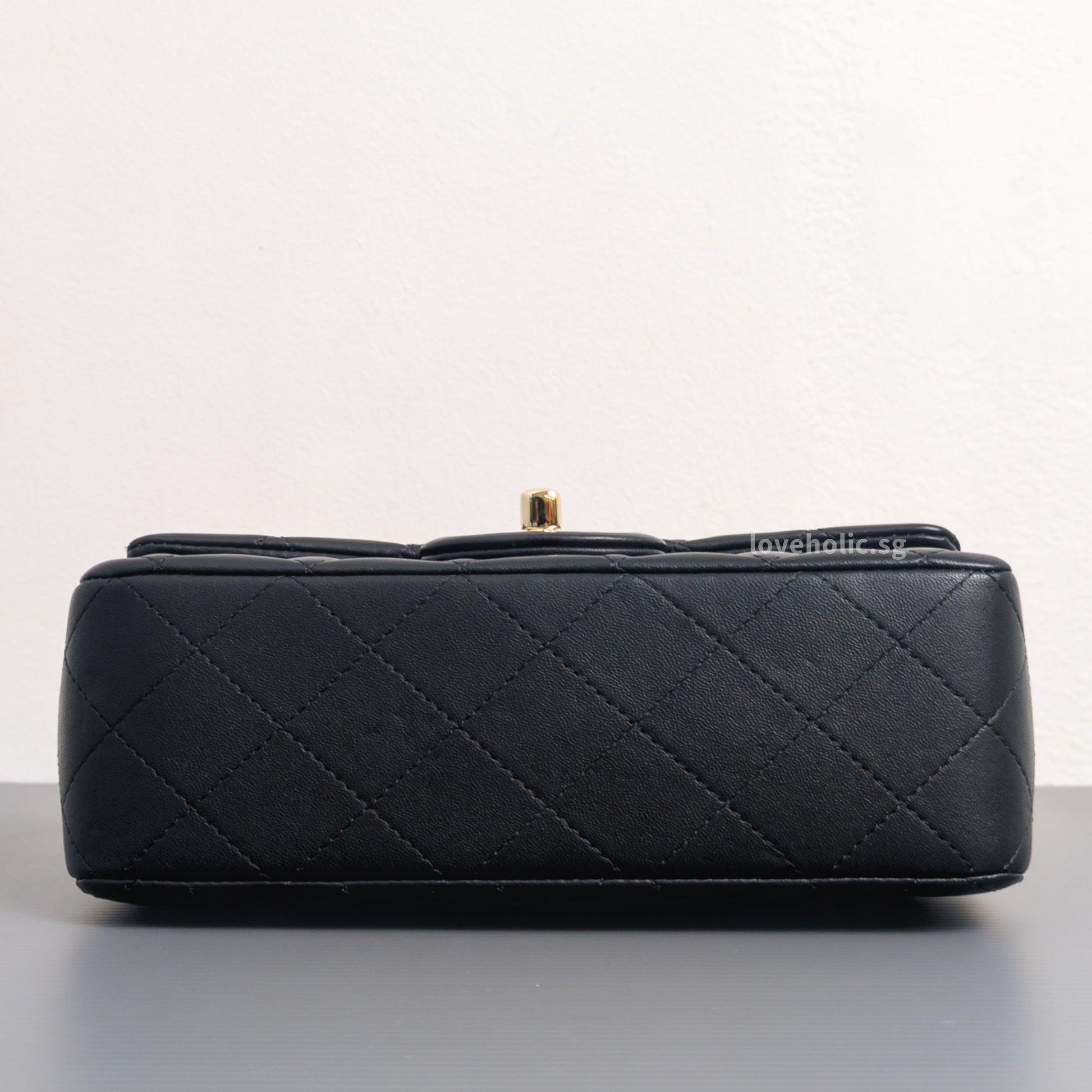 Mini Rectangle with Top Handle Black Lambskin Light Gold Hardware