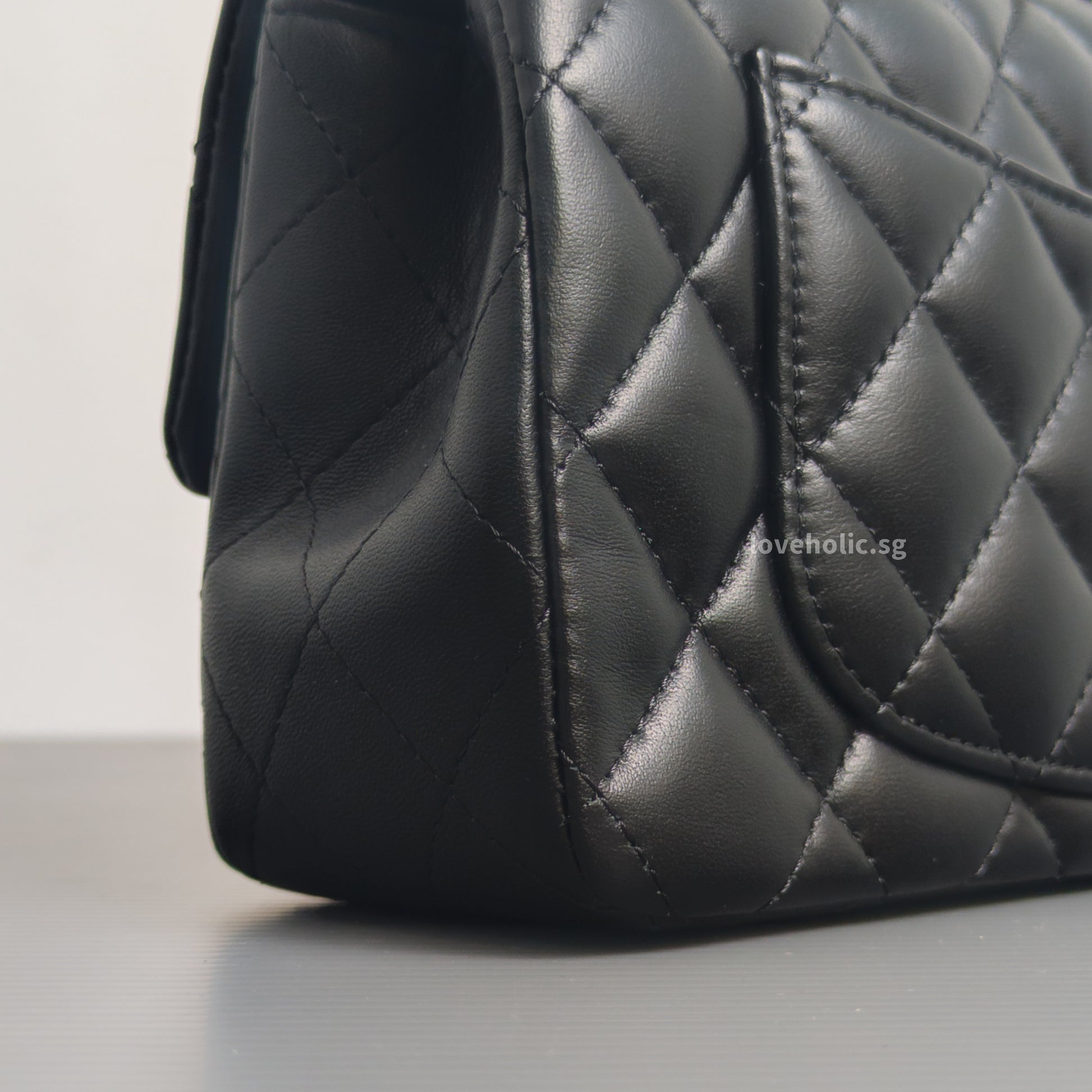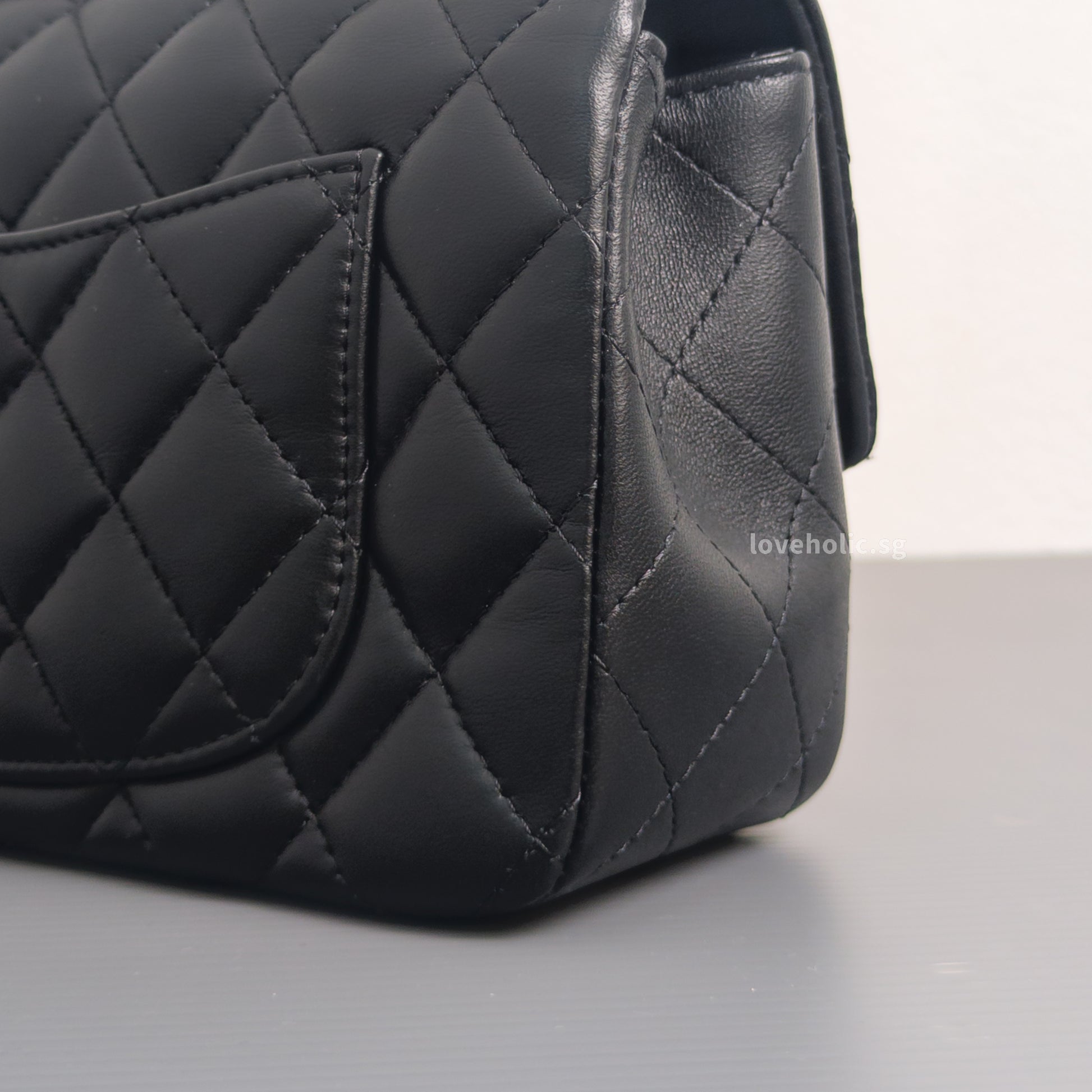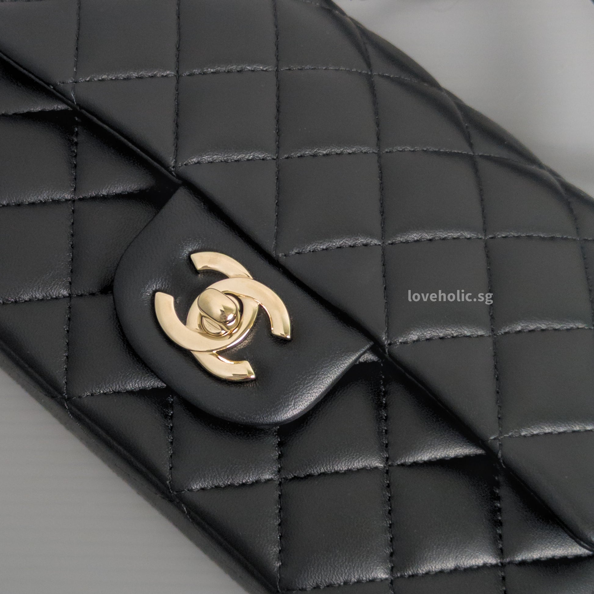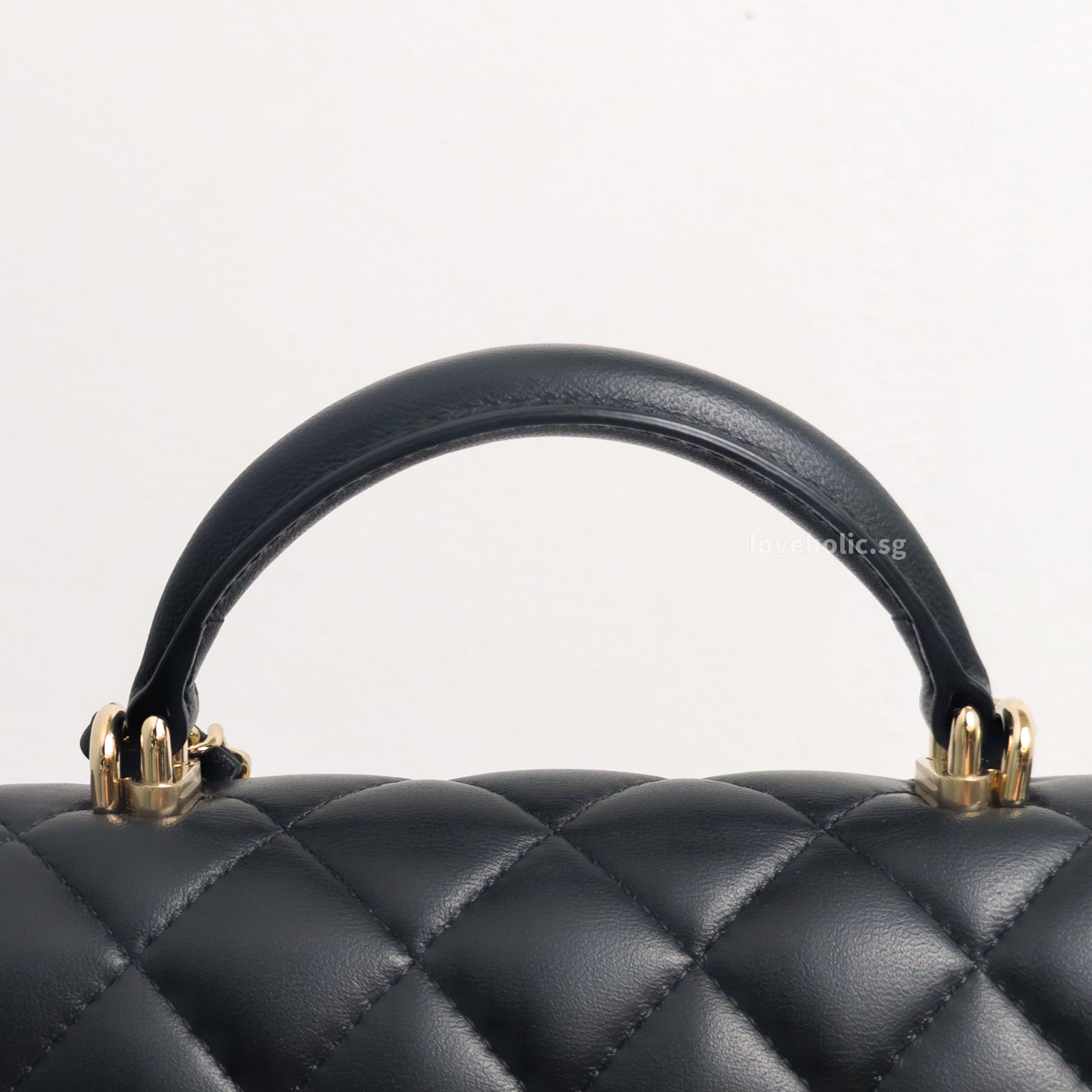 Mini Rectangle with Top Handle Black Lambskin Light Gold Hardware