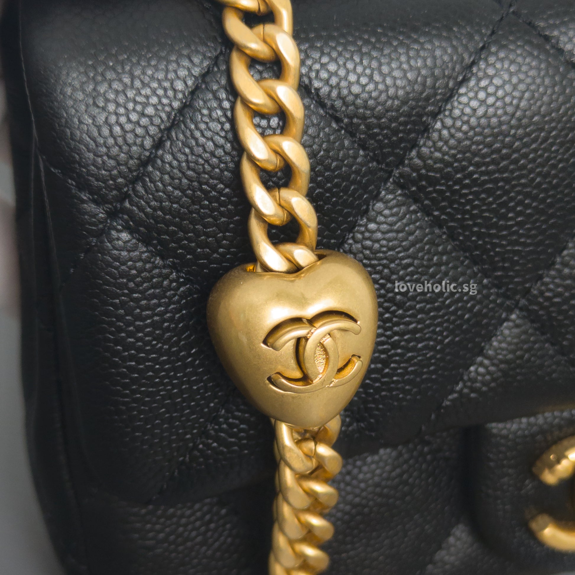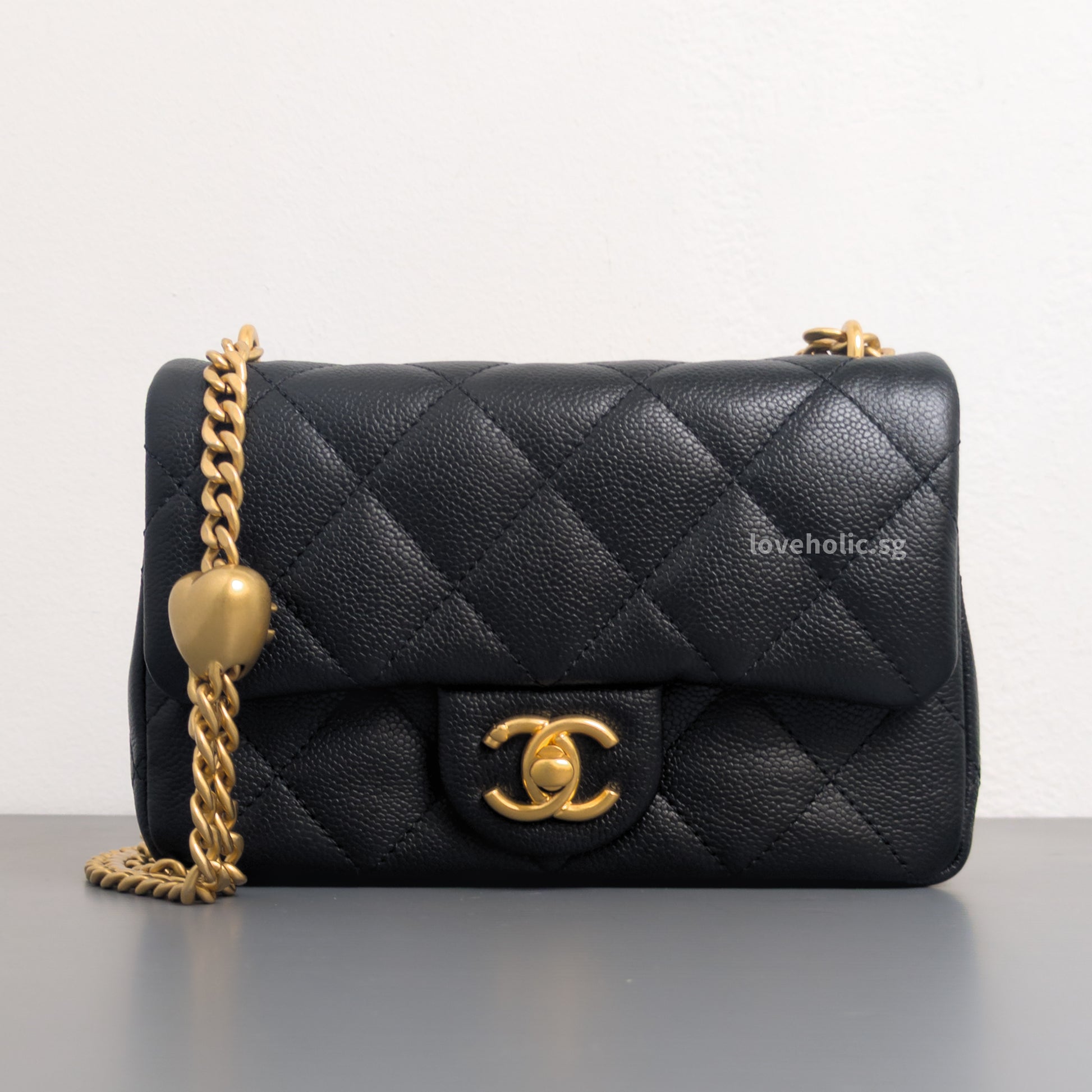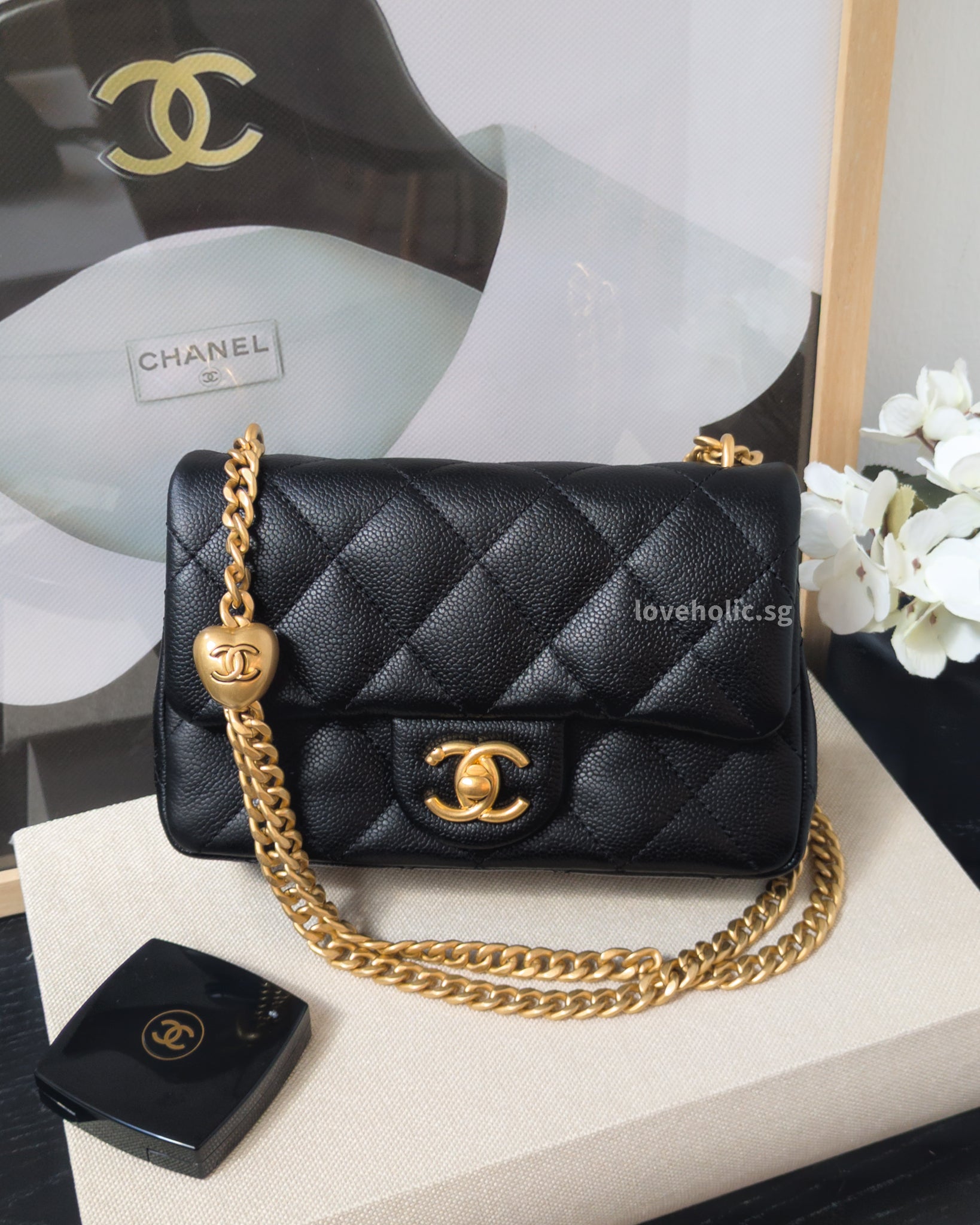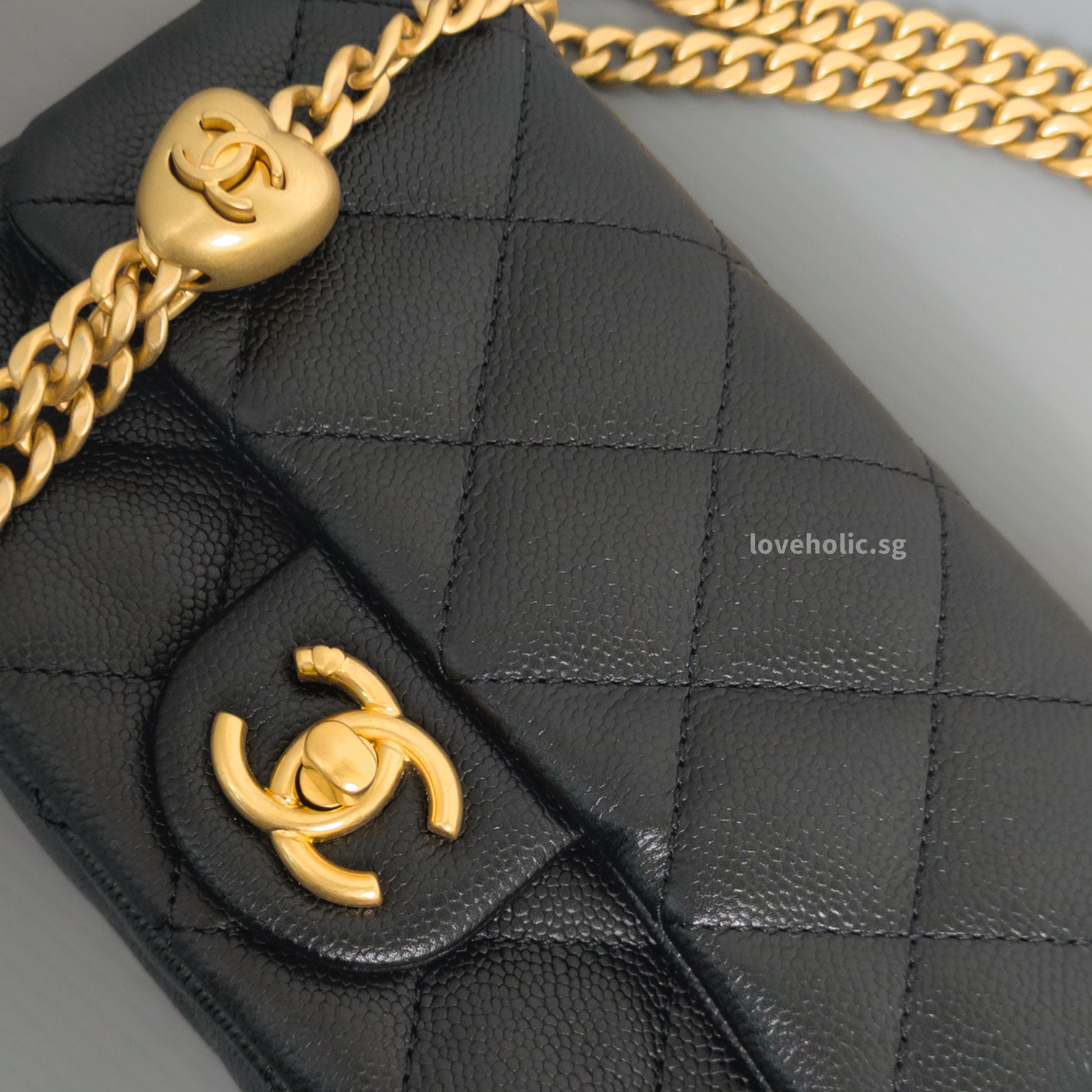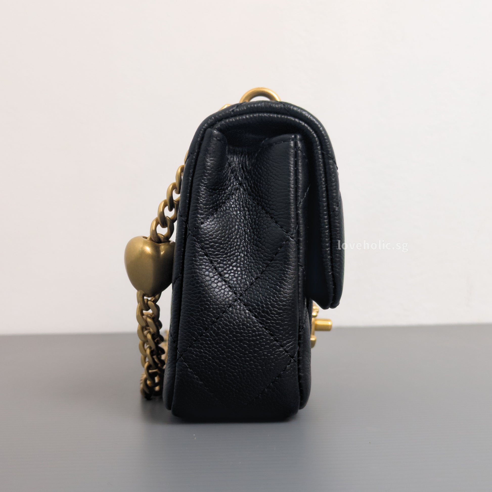 Square Flap Mini 23P Heart Crush | Black Caviar Brushed Gold Hardware