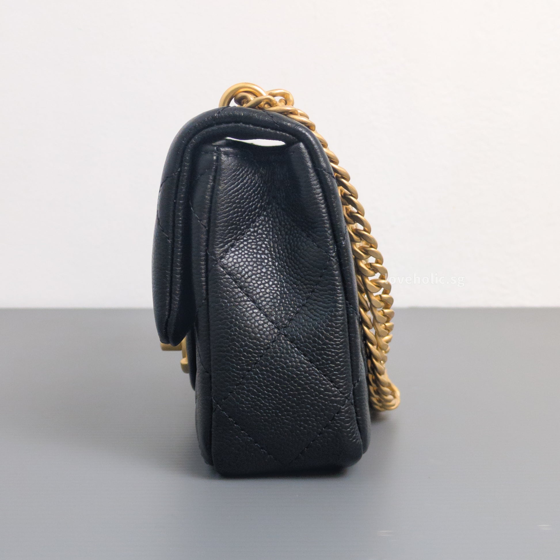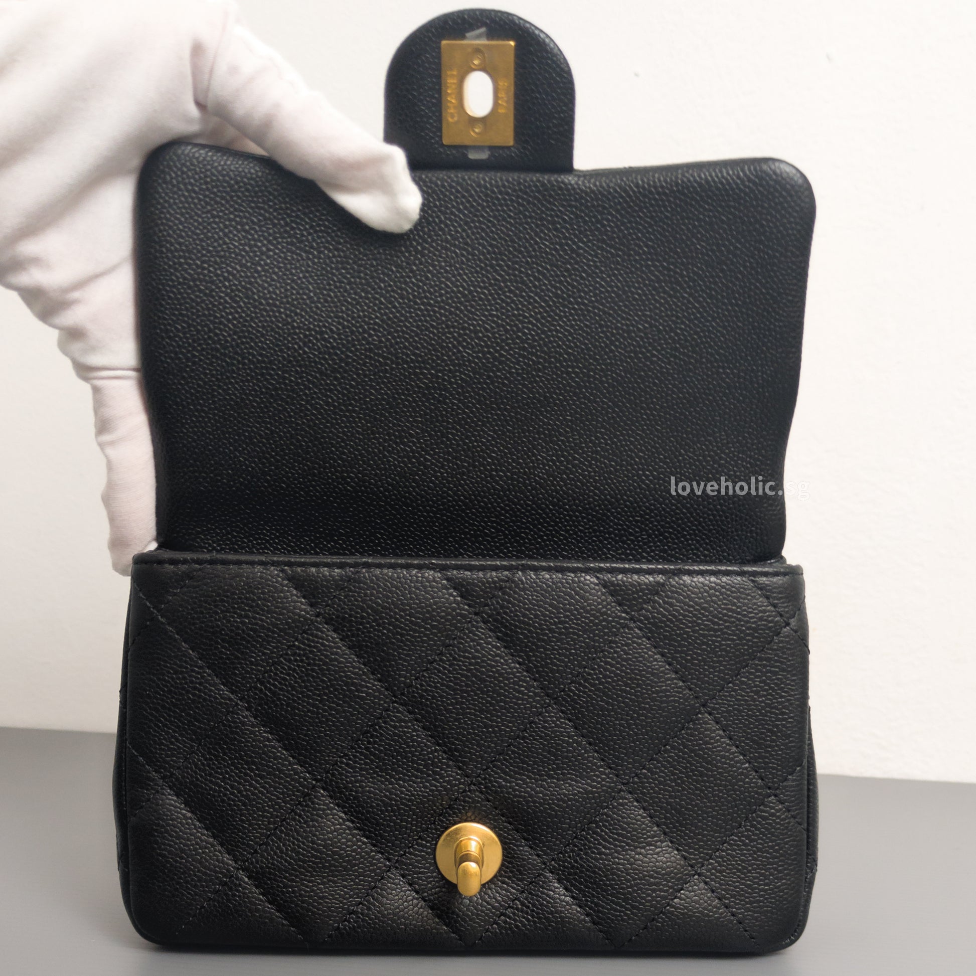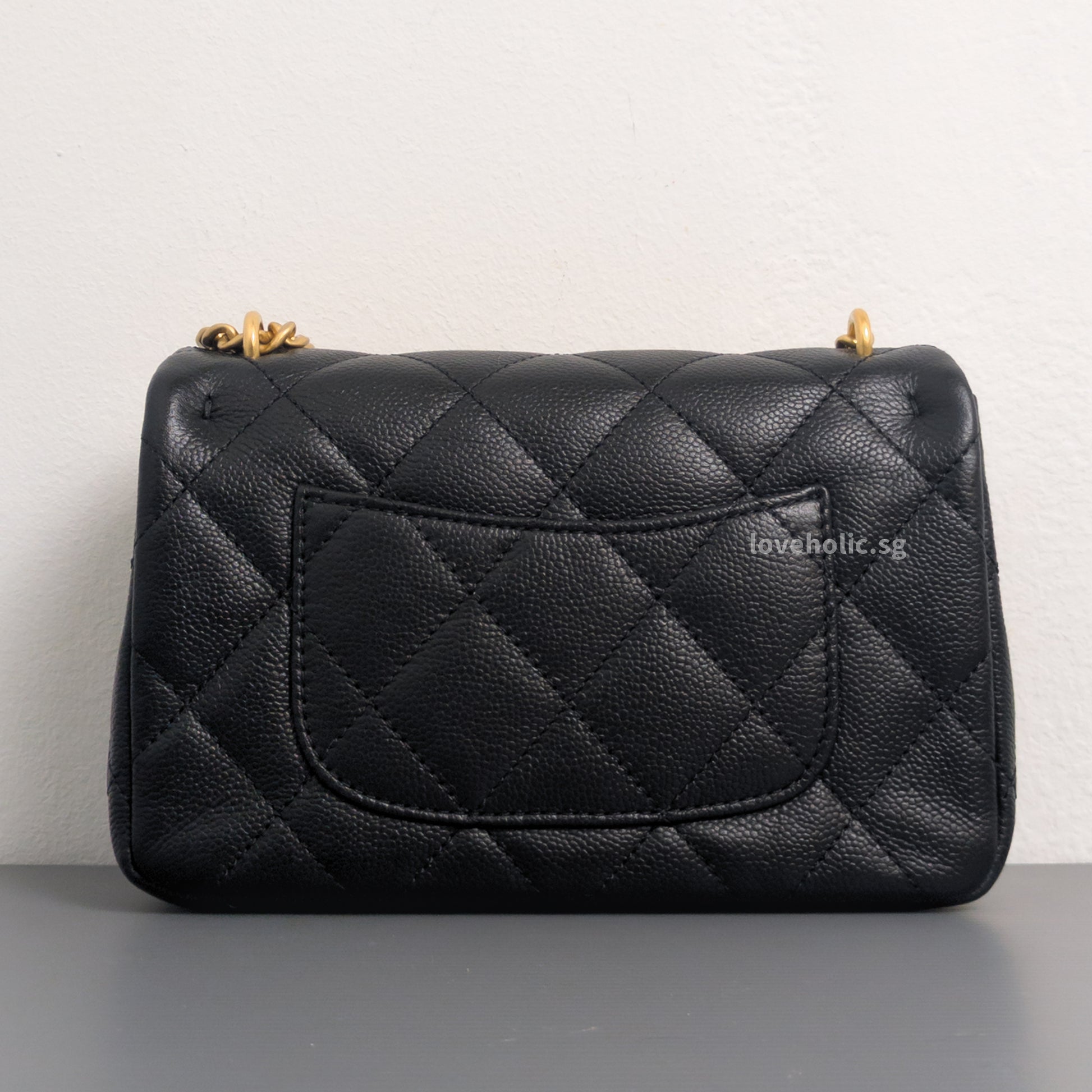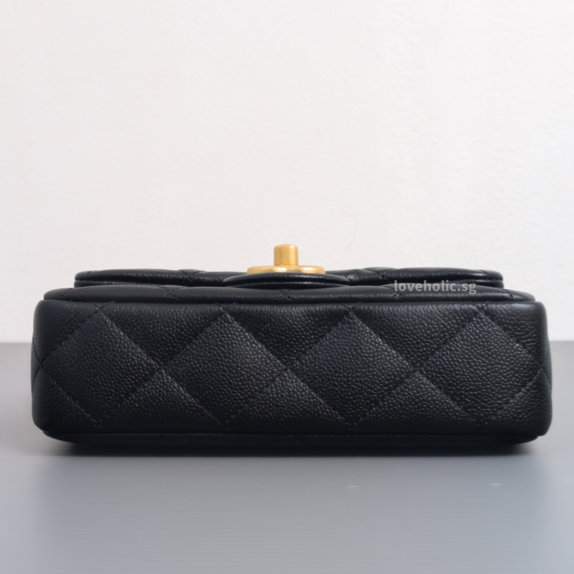 Square Flap Mini 23P Heart Crush | Black Caviar Brushed Gold Hardware