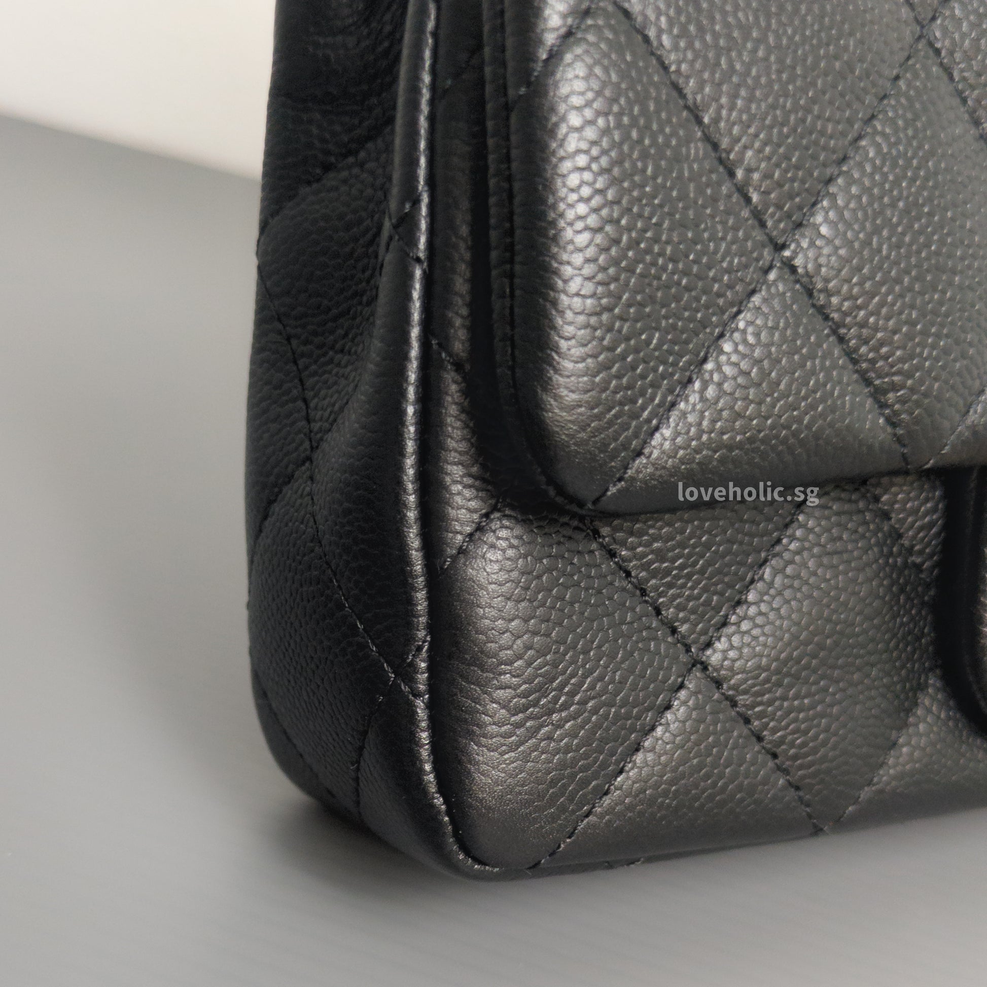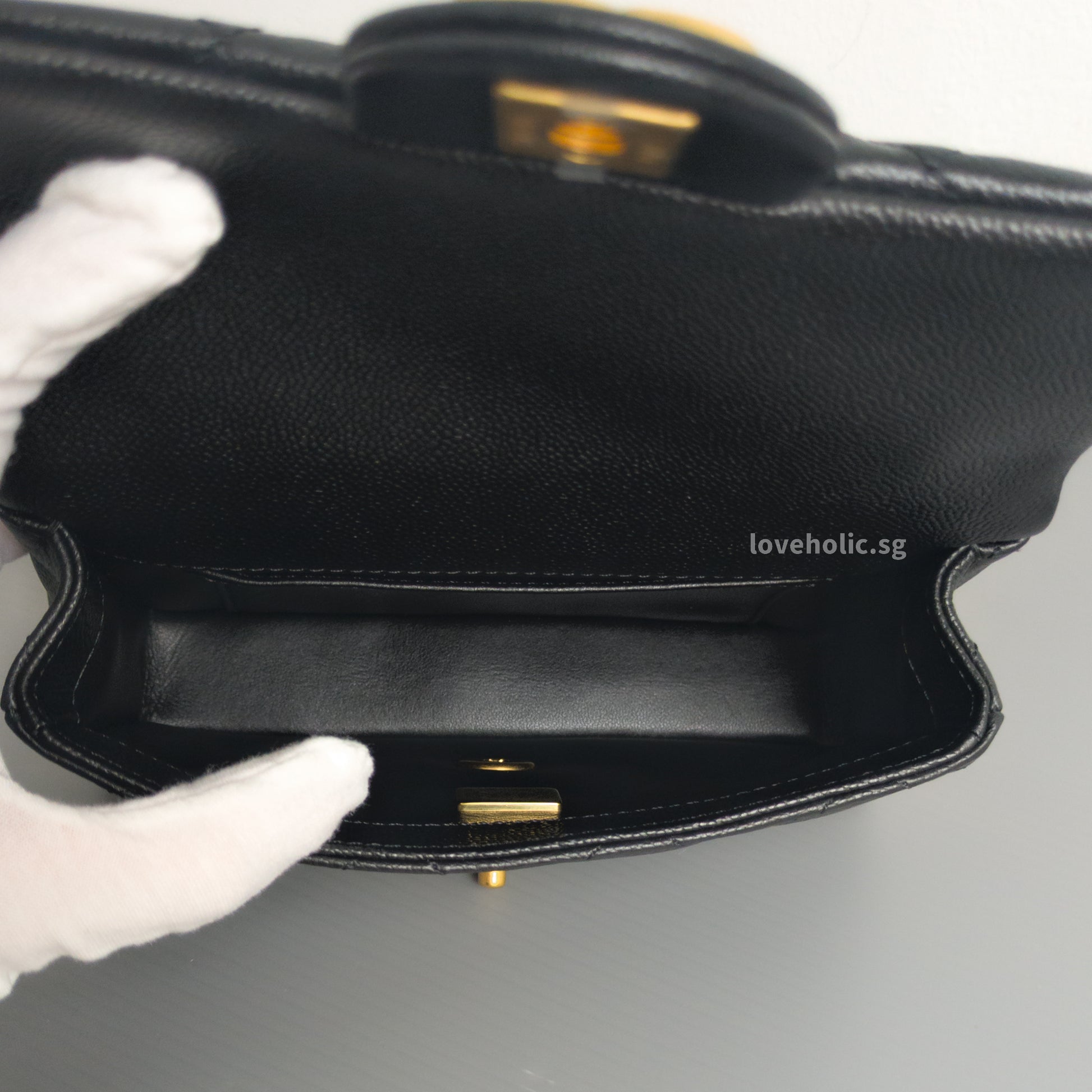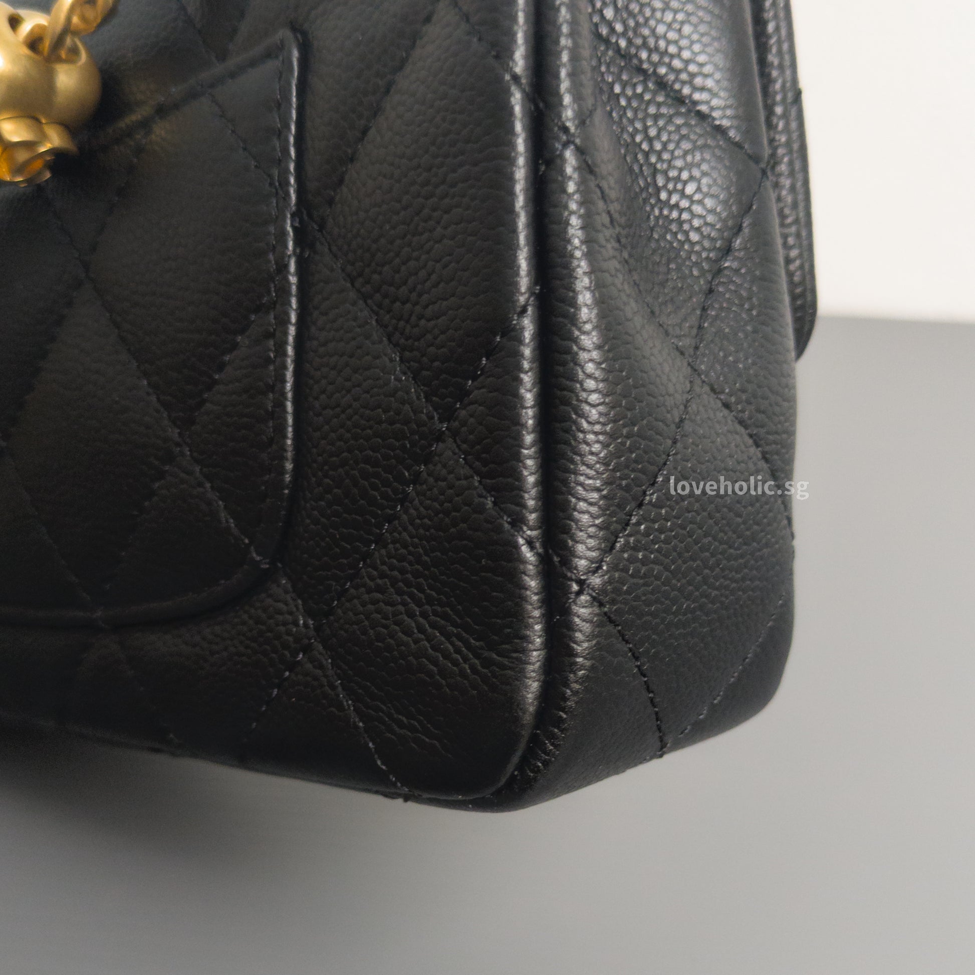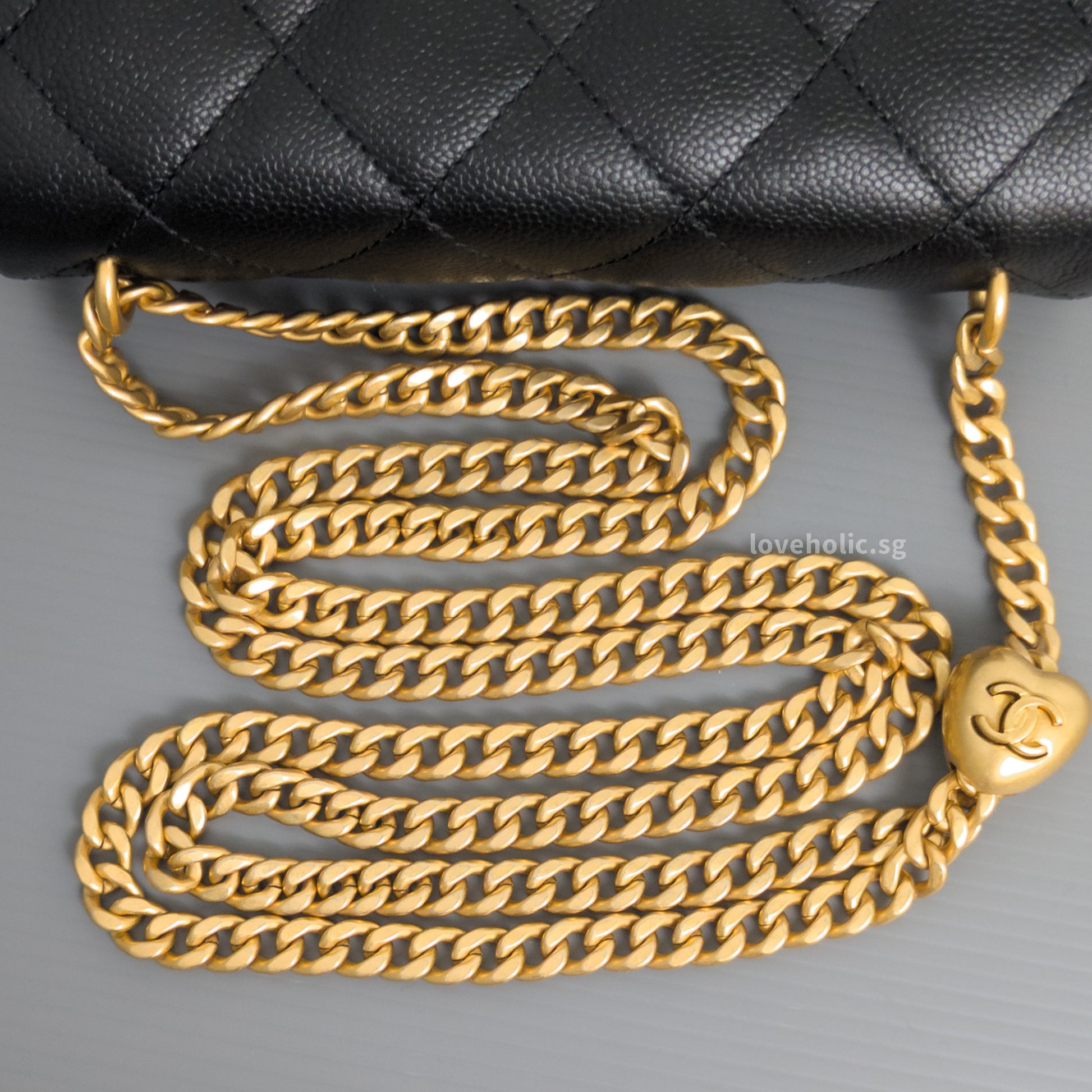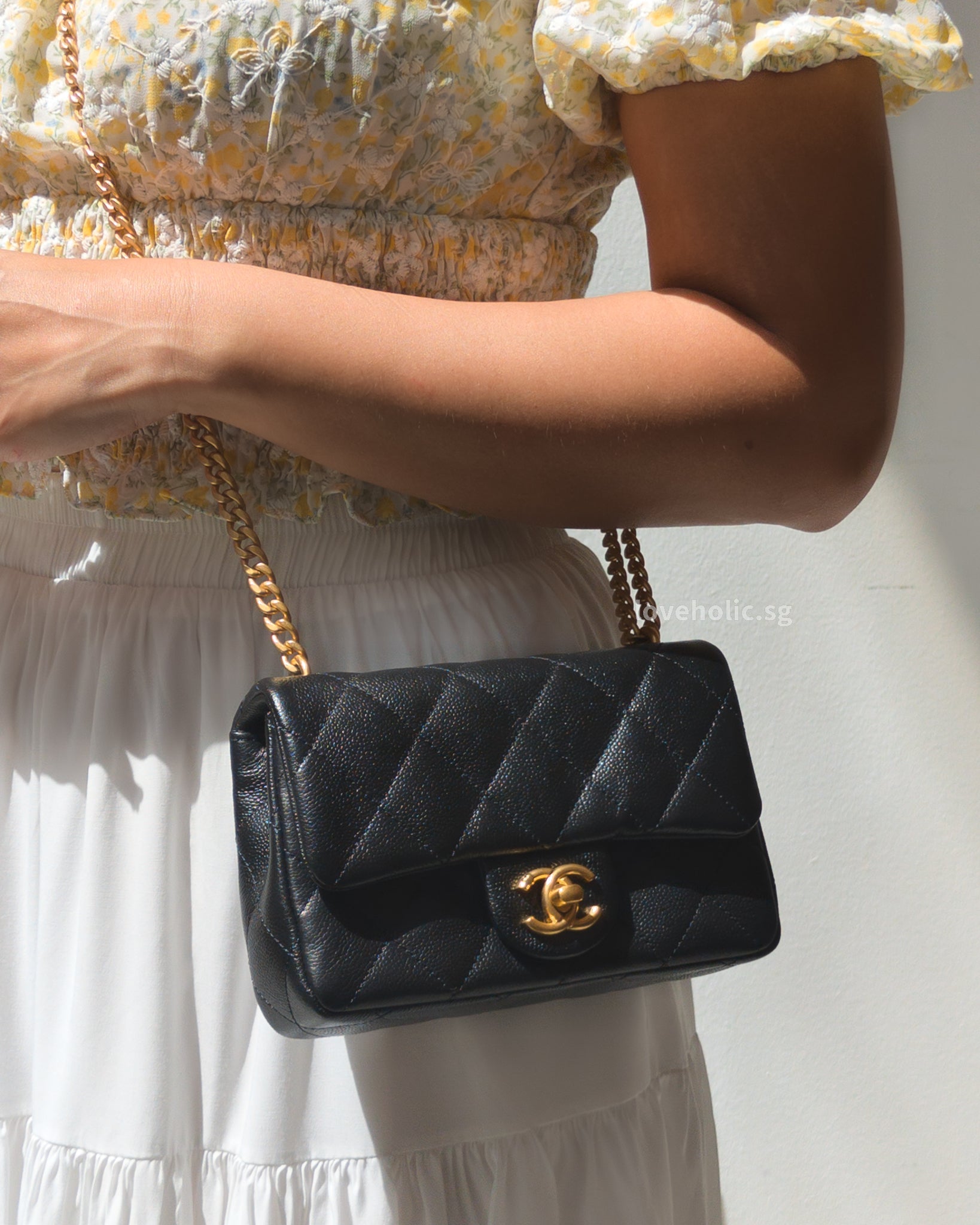 Square Flap Mini 23P Heart Crush | Black Caviar Brushed Gold Hardware