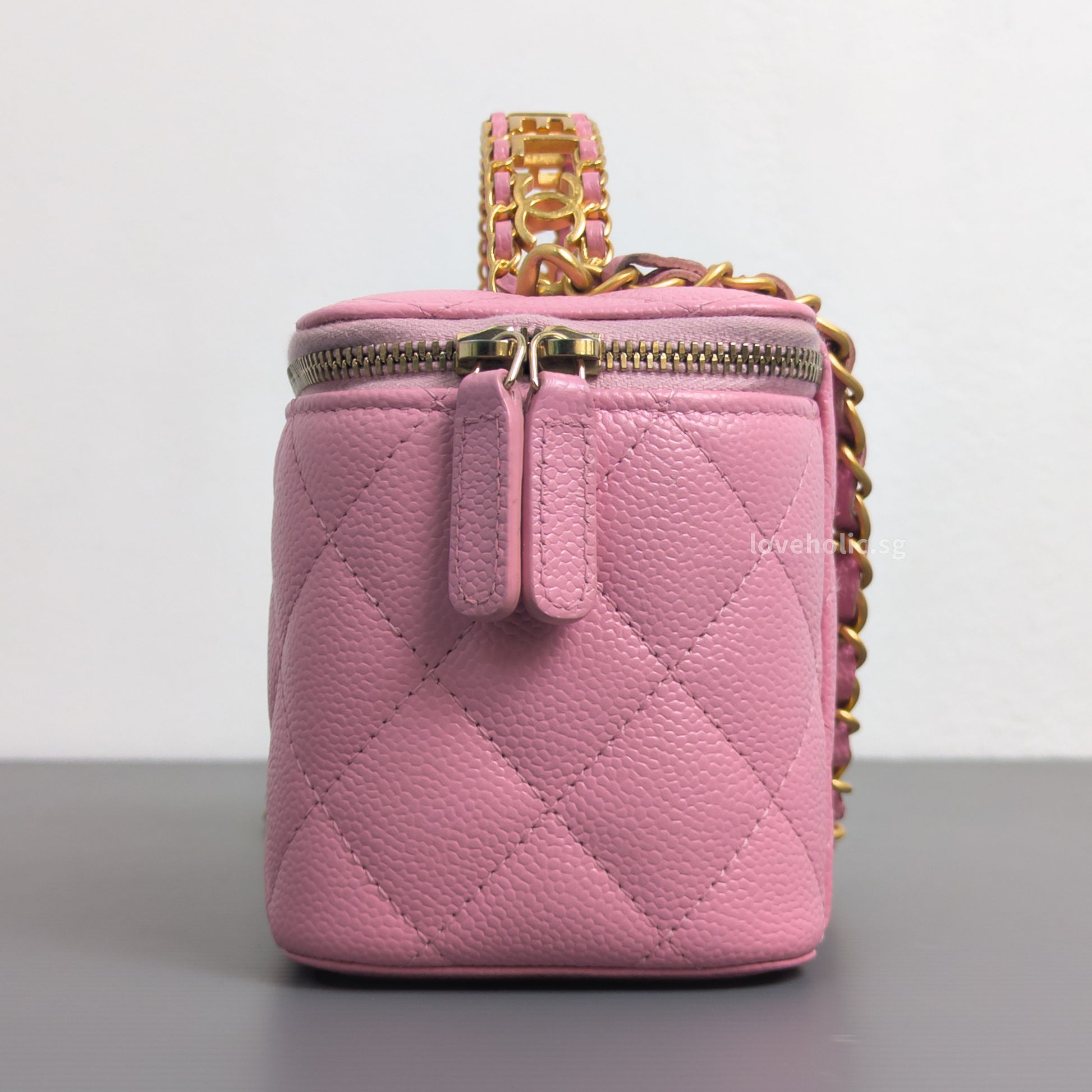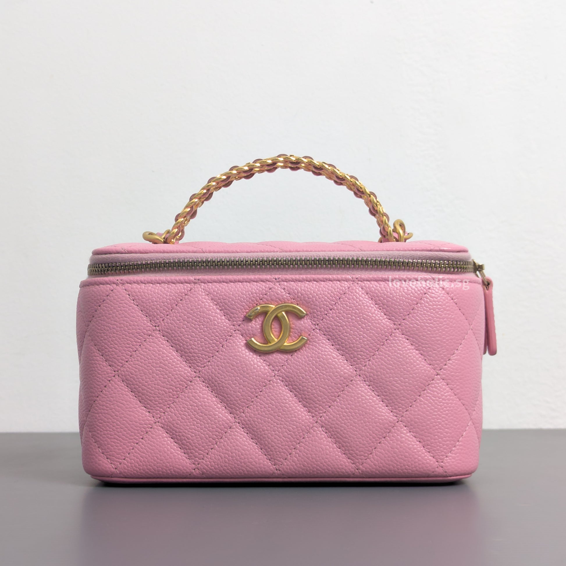 Top Handle Vanity On Chain "Pick Me Up" 22S | Pink Caviar Brushed Gold Hardware