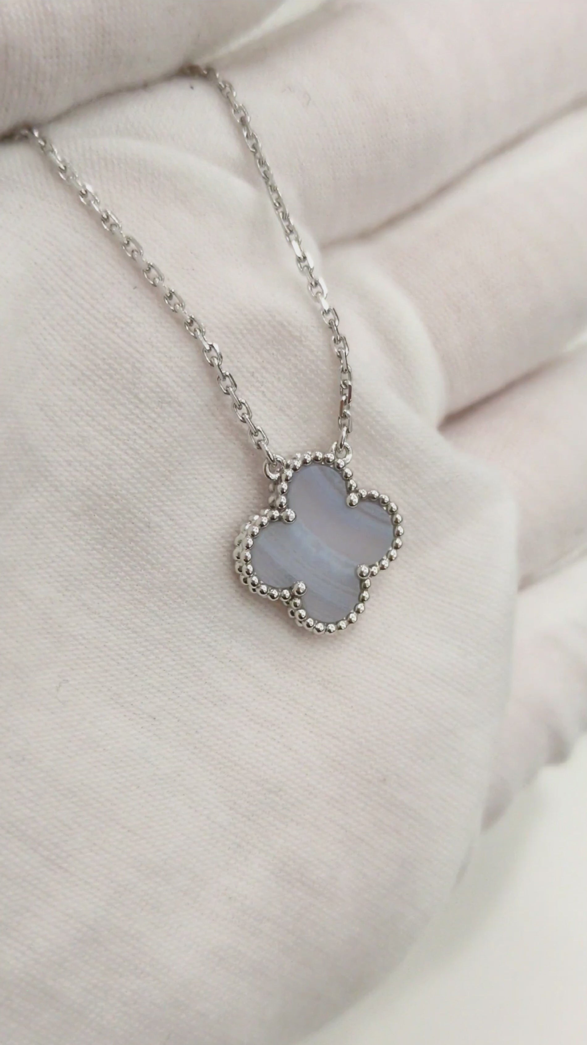 Vintage Alhambra Necklace Chalcedony 18K White Gold